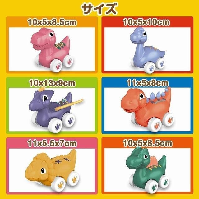 【プルバックカー】プルバック&ゴー恐竜カーは遊びやすく、子供が恐竜について学ぶのに最適です。の必要はありません電源。引き戻すだけで、次に手を離し、彼らは前進しますそれ自体で。この恐竜のおもちゃは子供の想像力と創造的思考を促します。 【クリエイティブデザイン】恐竜にはさまざまな色や形があり、そして彼らは持っています美しいプリント彼らの背中に。6種類ある恐竜の乗り物セットは、パーティーなどの記念品にもぴったり。 【ど良いサイズ】ミニサイズは約 9cmで、子供が握りやすいように簡単にできます。それは私たちにとっても便利です 外に出て運ぶ。おすすめのおもちゃ 2、3、4、5、6歳の子供向け。6台の恐竜の乗り物が含まれています。 【子供が喜ぶプレゼント】恐竜はいつでも子供たちにとって魅力的です。恐竜パーティーの記念品、パーティーの飾り、誕生日プレゼント、クリスマスプレゼント、恐竜のテーマのパーティーアイテム、その他の子供向けの祝いのギフトに最適です。 【知育玩具】子供は小さな恐竜の頭を振って歩くように押します。それは子供たちの学習スキルを高め、発達させるのに役立ちます。 鮮やかな色、かわいいキャラクターは、子供の視覚能力を刺激するのに役立ちます。