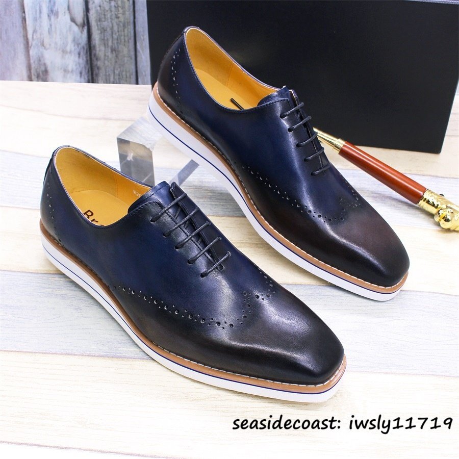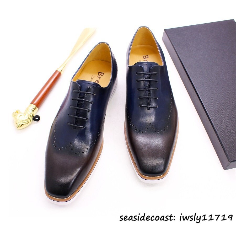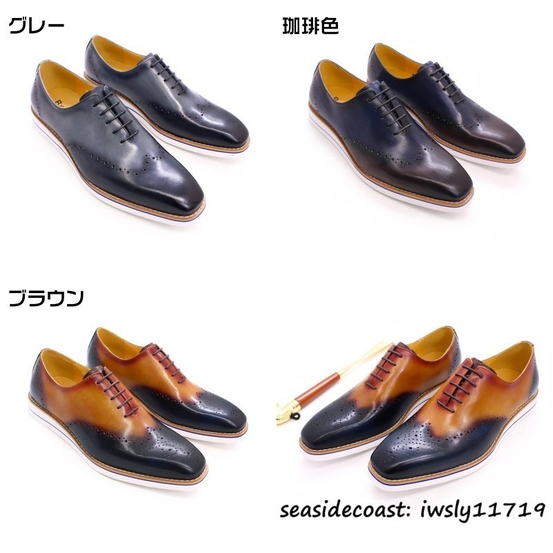 人気新品*定価9万 ビジネスシューズ メンズ 本革 レザーシューズ 手塗り上げ 彫り スリッポン ローファー 牛革革靴 紳士靴 珈琲色 24.5cm