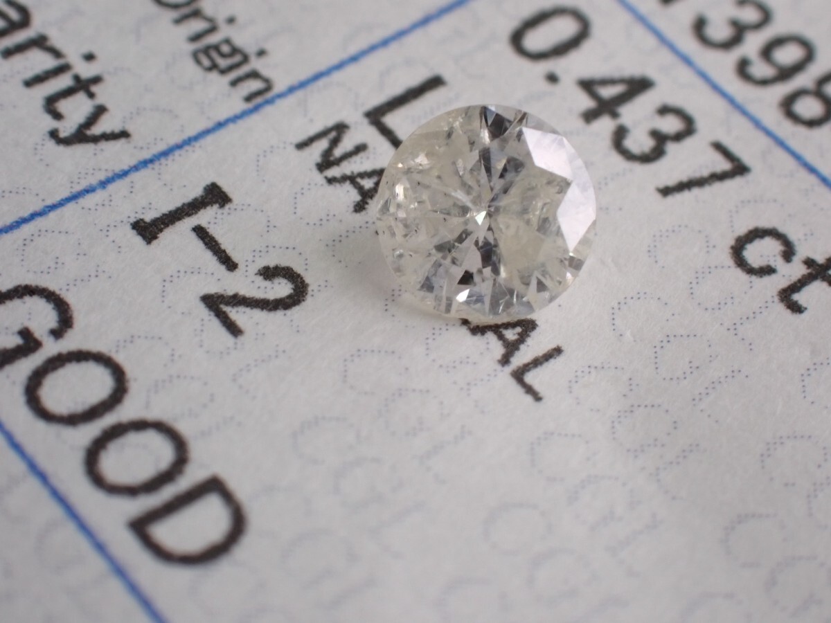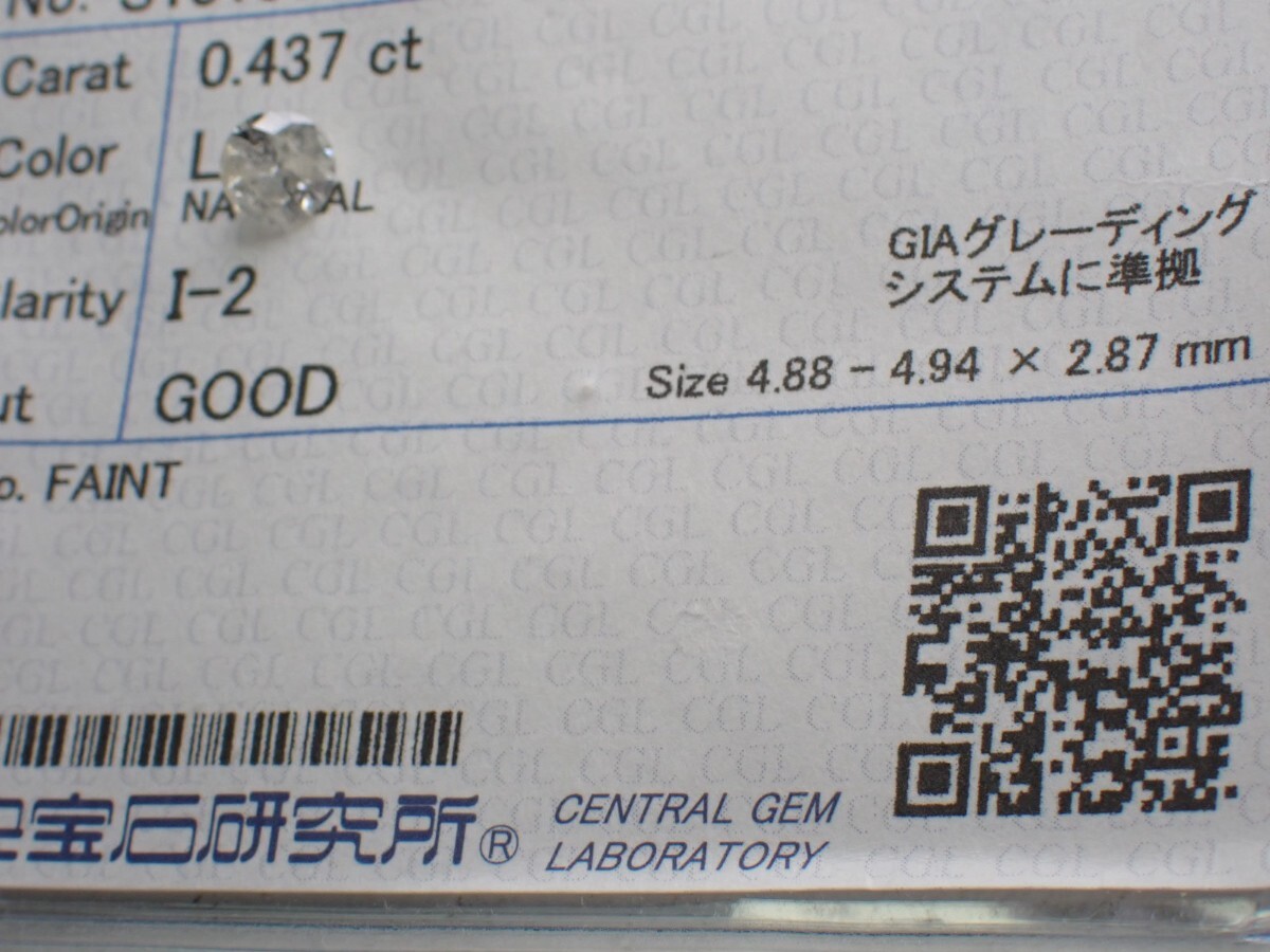 1円~!D0.437ct L I2 GOOD 天然ダイヤモンドルース 裸石 NATURAL DIAMOND sorting 中央宝石研究所ソーティング付き