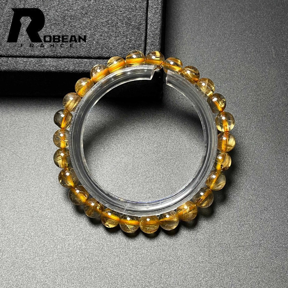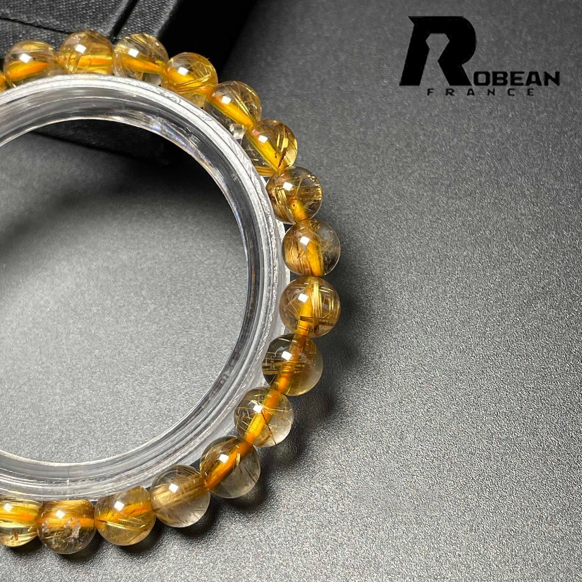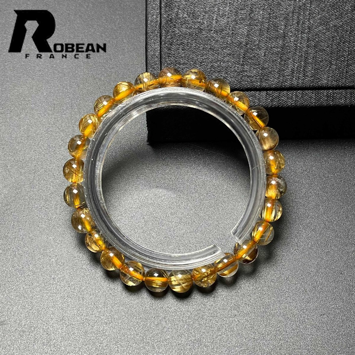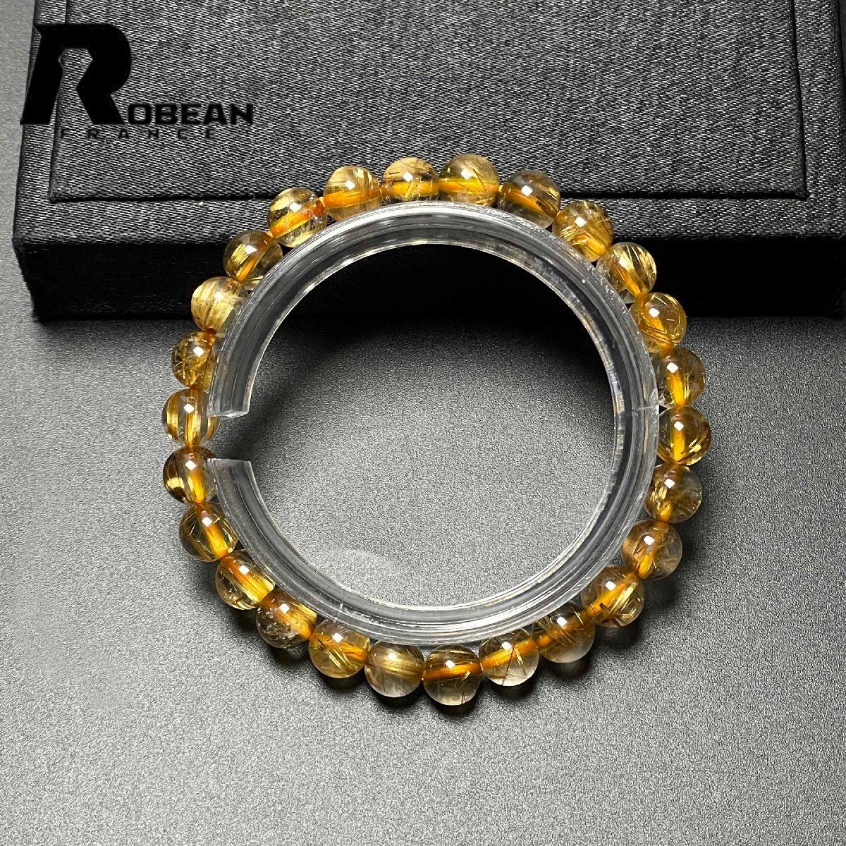 希少 EU製 定価6万円★ROBEAN・太陽花タイチンルチル★黄金針水晶 金運 開運 ゴールド ブレスレット パワーストーン 6.9-7.3mm M0715872