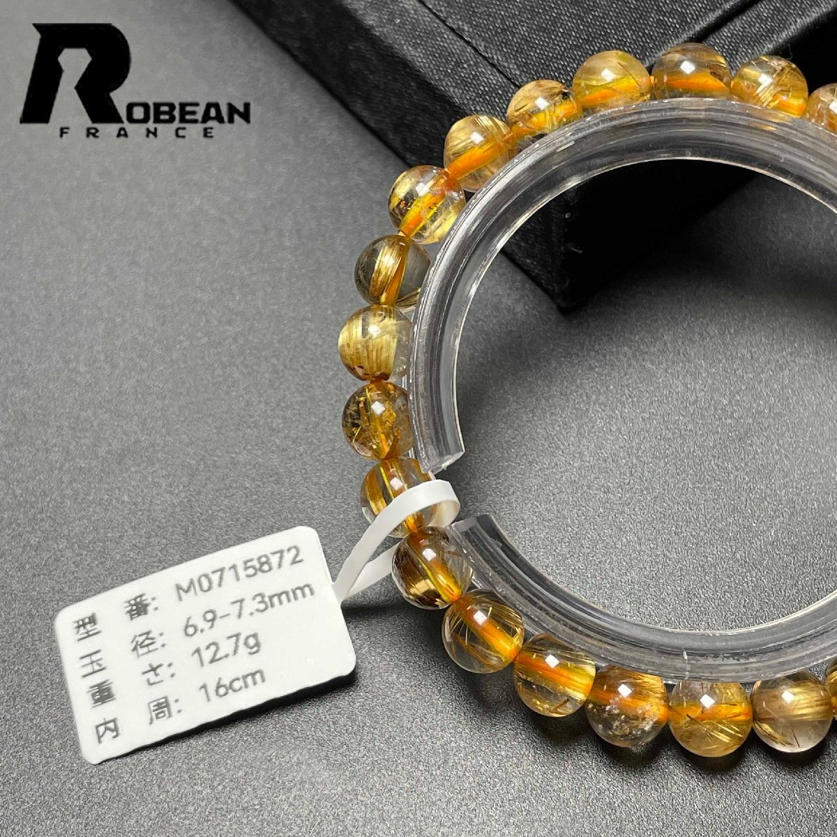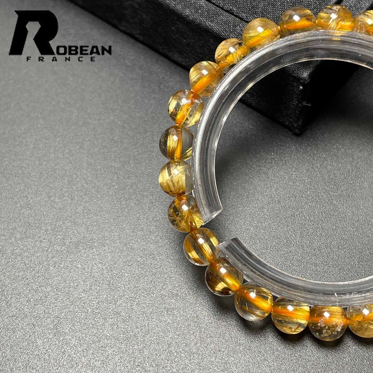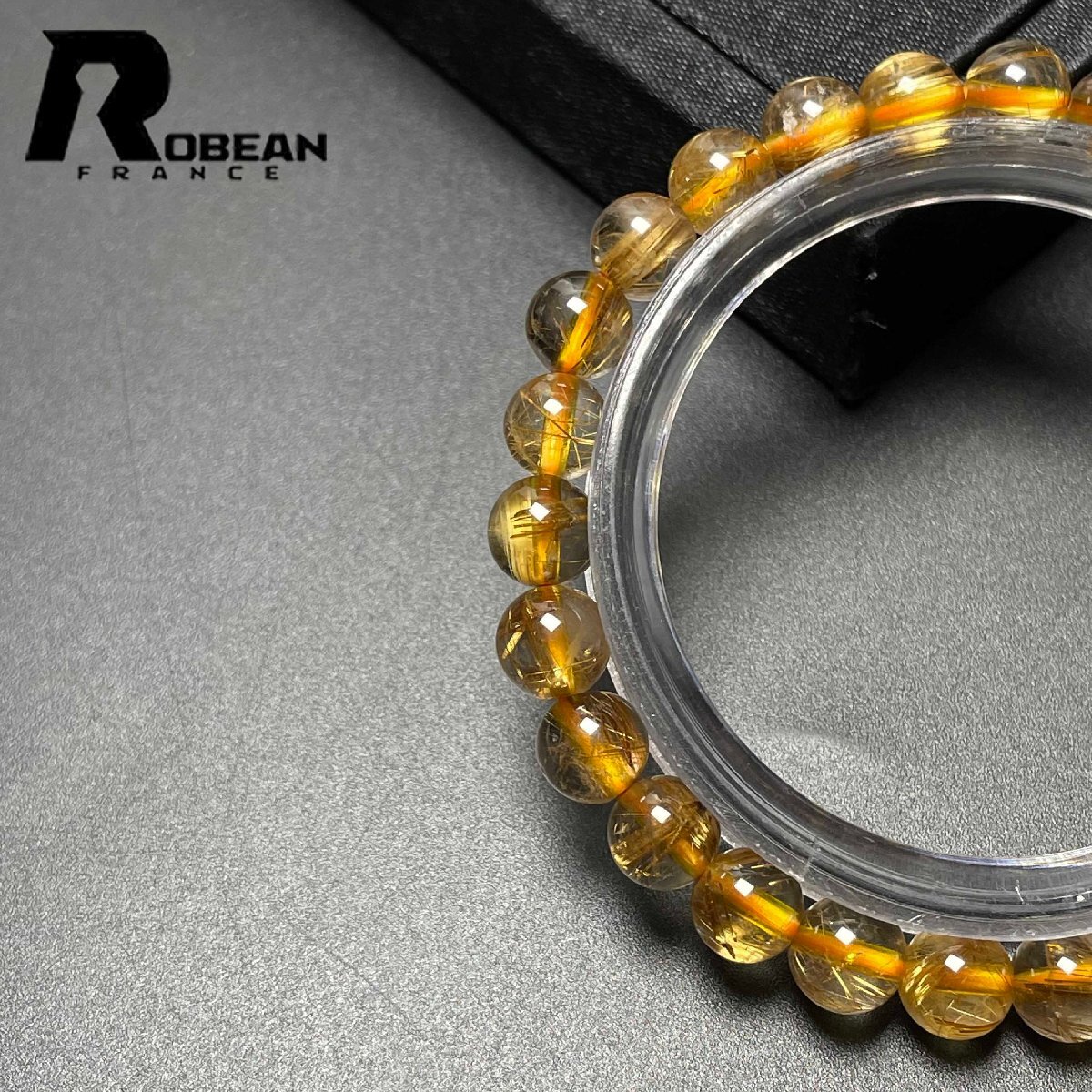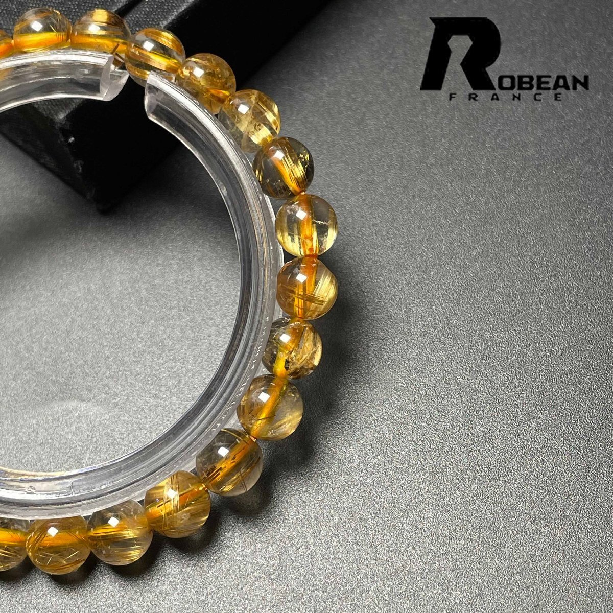 希少 EU製 定価6万円★ROBEAN・太陽花タイチンルチル★黄金針水晶 金運 開運 ゴールド ブレスレット パワーストーン 6.9-7.3mm M0715872