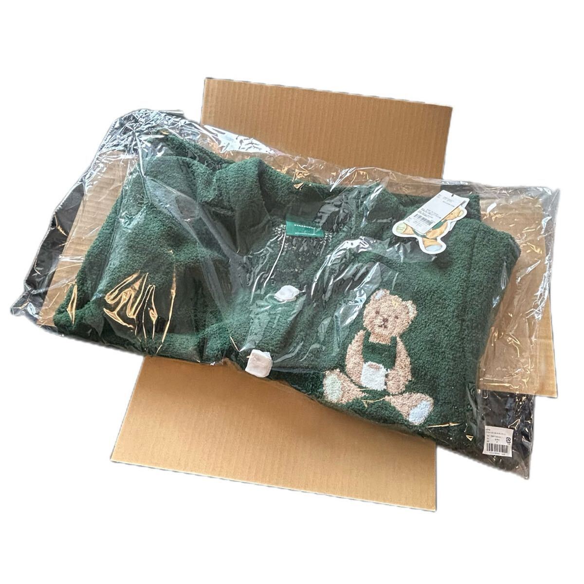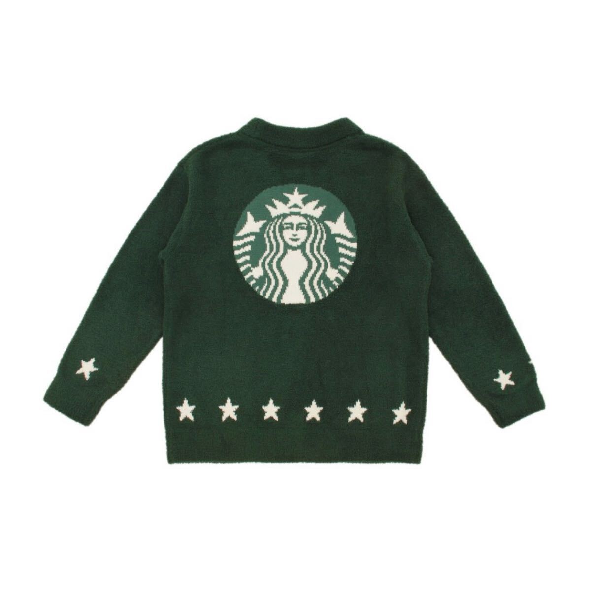 こちらは人気ブランド gelato pique(ジェラートピケ) と STARBUCKS(スターバックス) の限定コラボ、パウダースタージャガードカーディガン(グリーン) です。