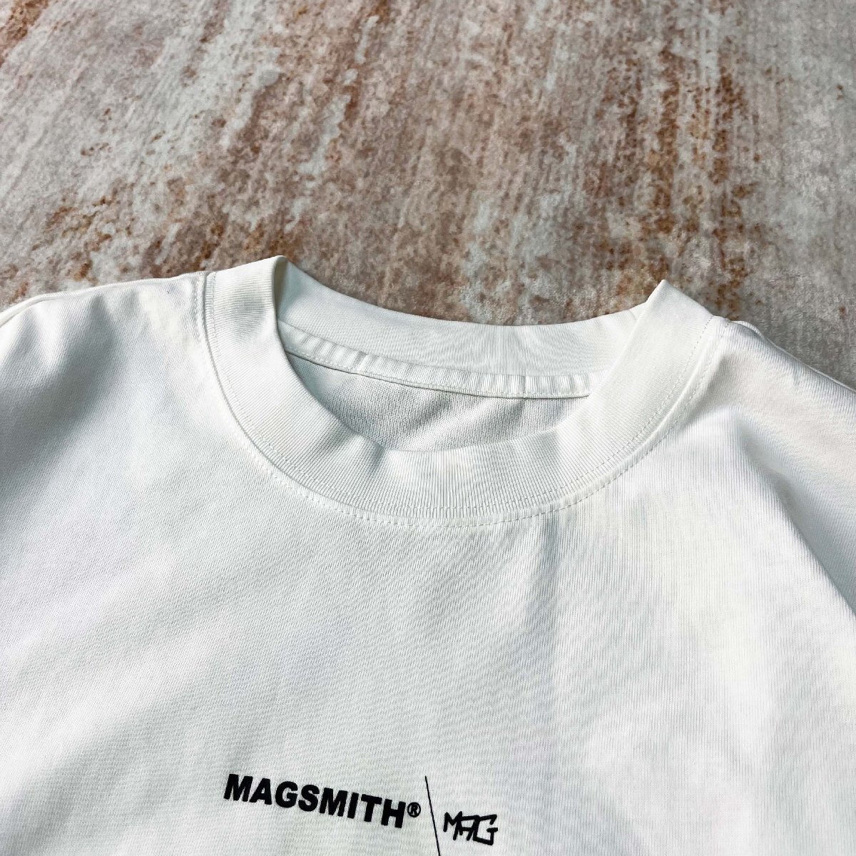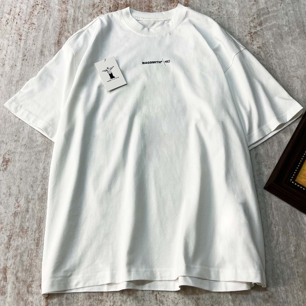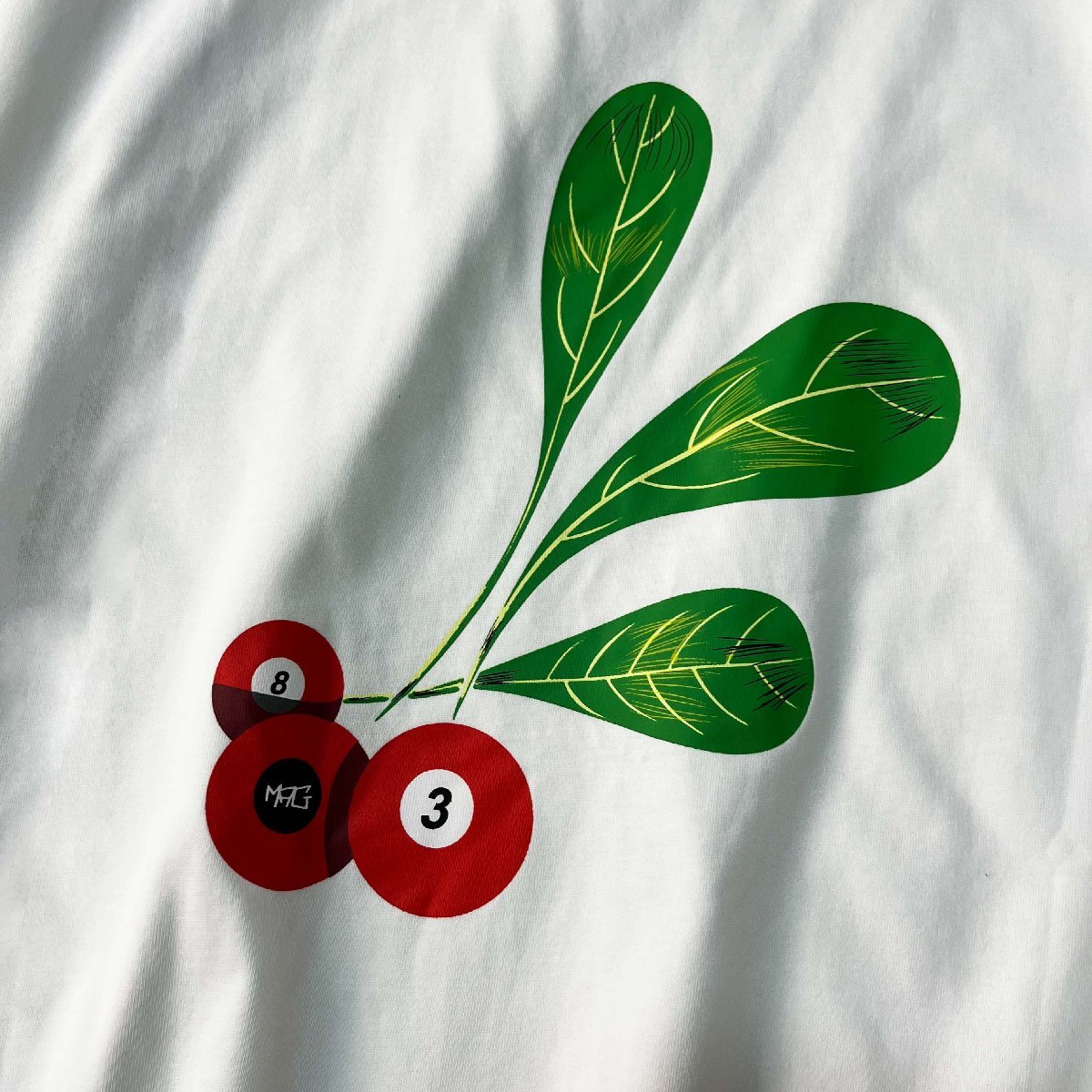 胸元にはシンプルでおしゃれな英文ロゴを配置し、背中にはフルーツのプリントを施した、遊び心のあるデザインが特徴です。少しゆったりとしたサイジングながらも、バランスの良い丈感にすることで、だらしなく見せない。