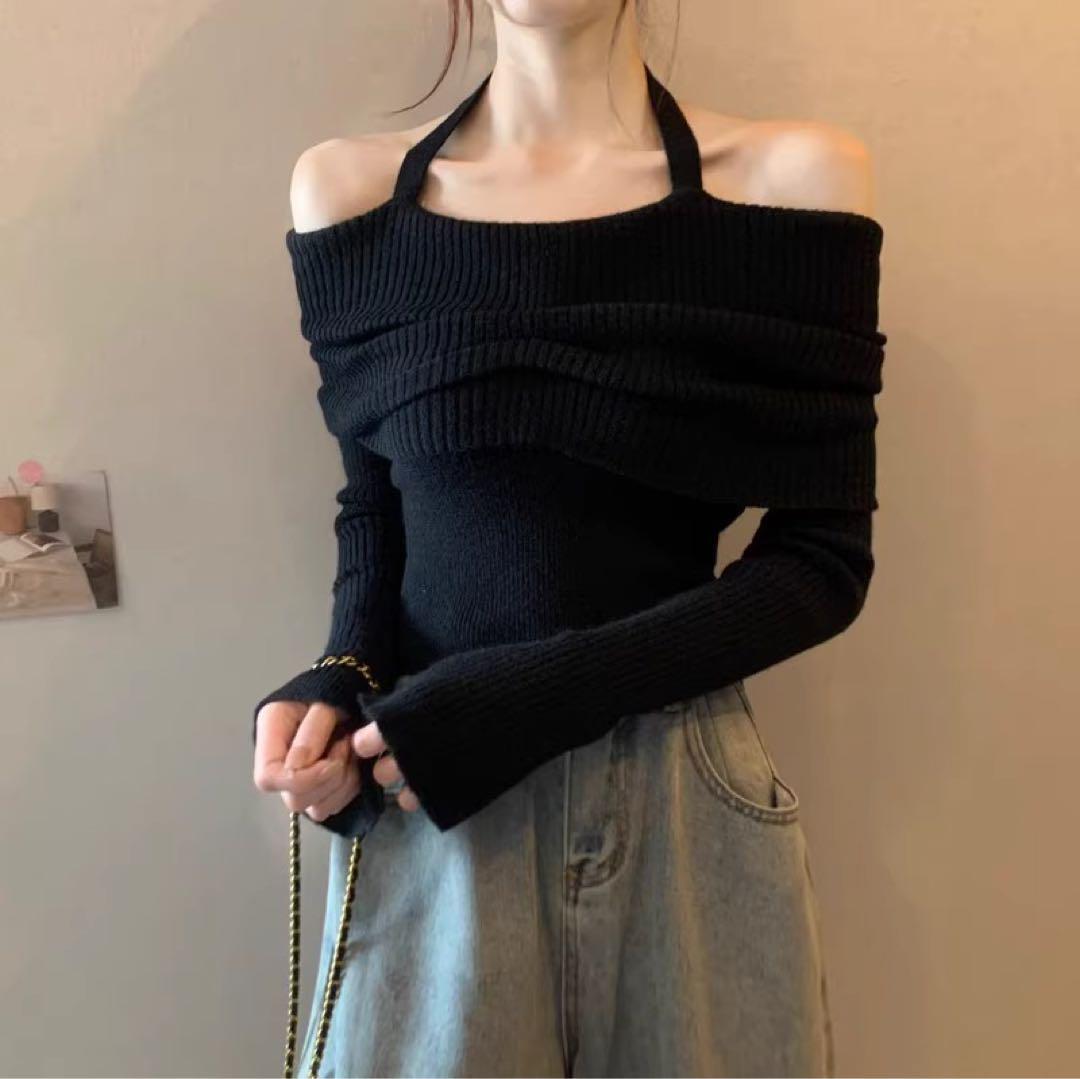 大人っぽく着こなせるホルターネックのリブニットトップスです。