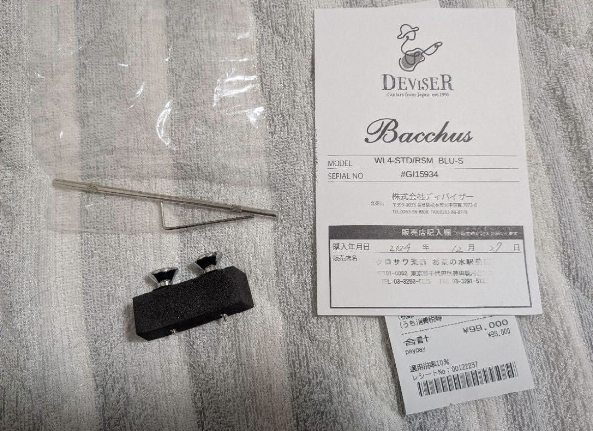 本体に目立った傷はありませんが、弦にいくつか小さなサビが見られます。使用には問題ありません。