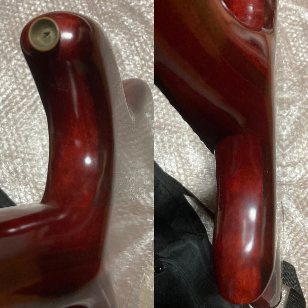 KAWAI F-2Bです。 弦は裏通し、4段ロータリーピックアップセレクターと、 各ピックアップのキャクター切替スイッチが採用された F-2B Custom、もしくはF-2B Deluxeと呼ばれるEagle Crestロゴ期の一本です。 ▼コントロール ・4段ロータリースイッチ(Front→Mix→Rear→Kill )反時計回り ・フロント:vol/tone/3wayキャラクタースイッチ ・リア:vol/tone/3wayキャラクタースイッチ 各PUを単独でキャラクター切り替えできるため、 ・Frontシングル+Rearハム ・Frontフェイズ+Rearシングル などの独特な組み合わせが可能です。 トーンもそれぞれがしっかり反映されます。 ミックス時に片側のボリュームを0にすると無音になる ALEMBICやRICK TURNERによくある仕様です。 スラップにもバッチリ対応したF-1Bが単純に2PUになり、 多様なジャンルへのアプローチできるようなベースです。 ▼マテリアル Body : Maple/Mahogany/Maple Neck : Mahogany/Maple (Neck Thru) Fingerboard : Rosewood (22F) Bridge : Heavy Brass 各コントロールに問題なく、弦高低めで快適に演奏可能。 ネックはほぼ真っすぐでフレットは9割以上の残り ロッド調整も可能です。 fenderをはじめベースは若干の順反りが基本ですが、 こちらは真っすぐに設定しています。 コントロールの銀色のシールと 裏通しの位置の駒が欠品。 演奏上特に問題のない箇所です。