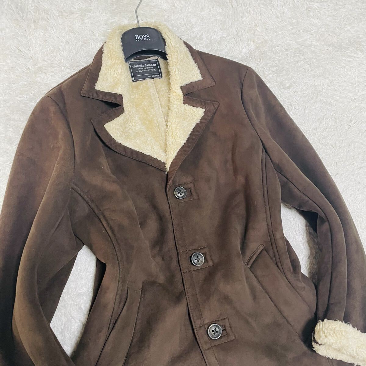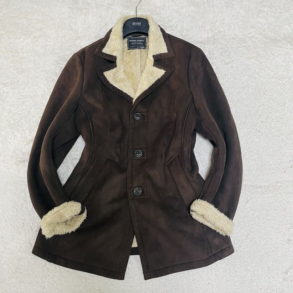 希少L〜XLサイズ!大きいサイズ◆ORIGINAL GARMENT ムートンコート ジャケット ボア ファー 毛皮 極暖 肉厚 ダークブラウン 茶色