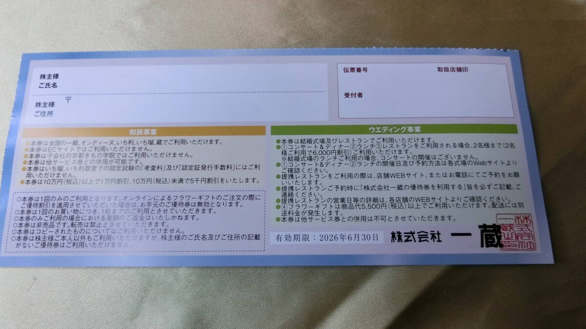 m1b■送料無料■株主優待 一蔵 1枚 ★