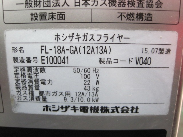 商品名 | 【ホシザキ】【業務用】【中古】 ガスフライヤー FL-18A-GA 都市ガス/単相100V |