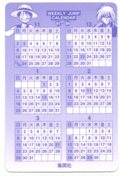 裏面がカレンダーになっていますが、'97-'98 の表記があるとおり相当古いものです。