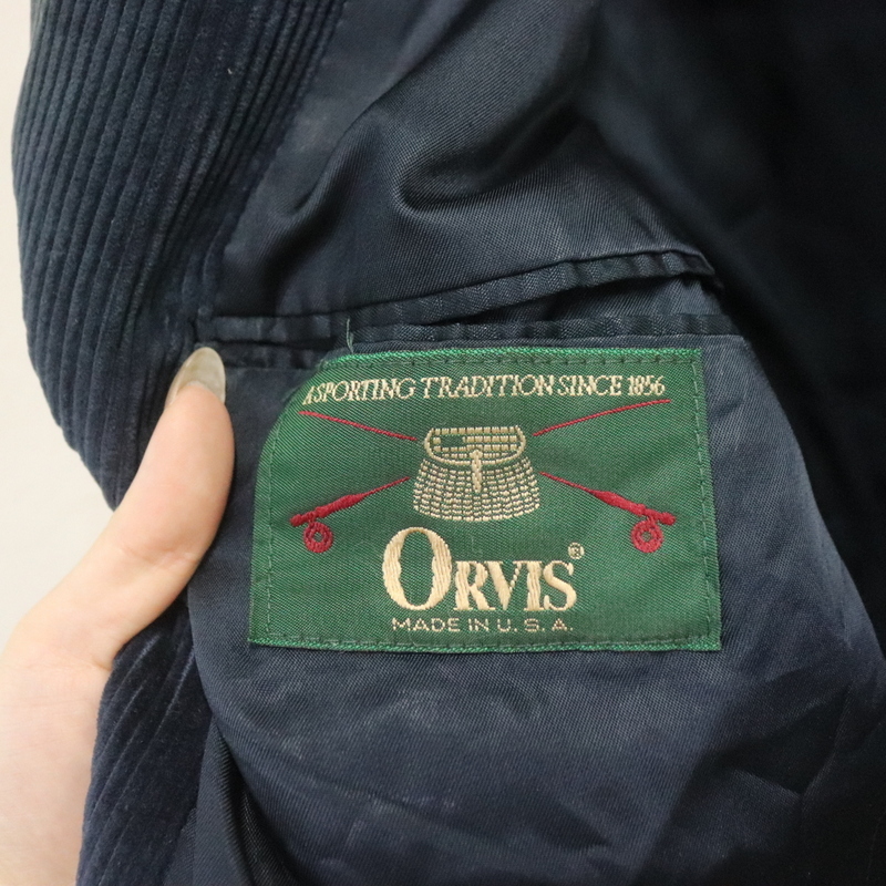 D568 80sビンテージ ORVIS テーラードジャケット USA製■1980年代製 表記40サイズ ネイビー 紺 コーデュロイ エルボーパッチ ブレザー