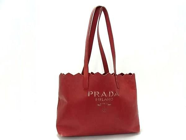 1円 PRADA プラダ レザー トートバッグ ショルダーバッグ 肩掛け レディース メンズ レッド系 FN6788
