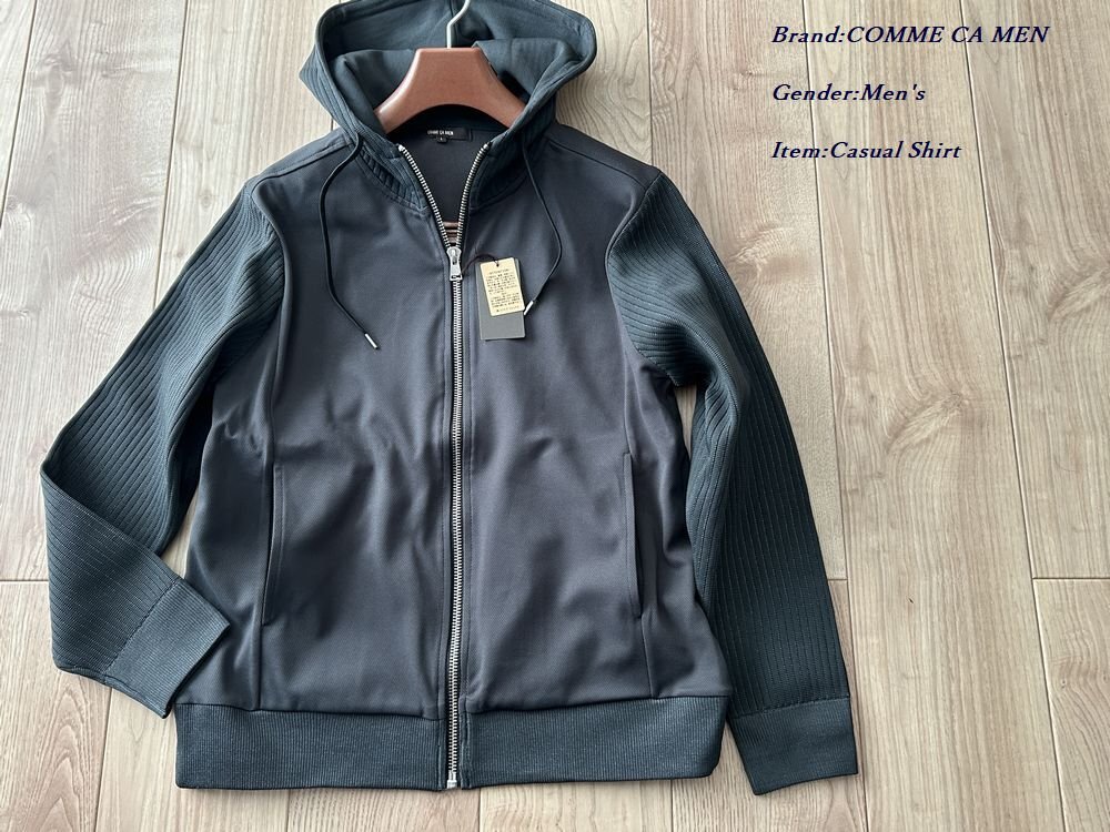新品 COMME CA MEN コムサメン ジップアップ ニットコンビ パーカ 08チャコールグレー Mサイズ 40CI09 定価31,900円