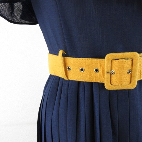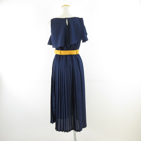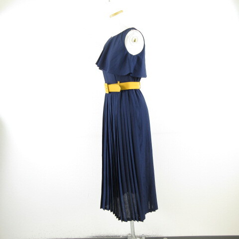 レディアゼル REDYAZEL ラッフルアシメスリーブカラーワンピース プリーツ ロング 紺 S *A289 レディース