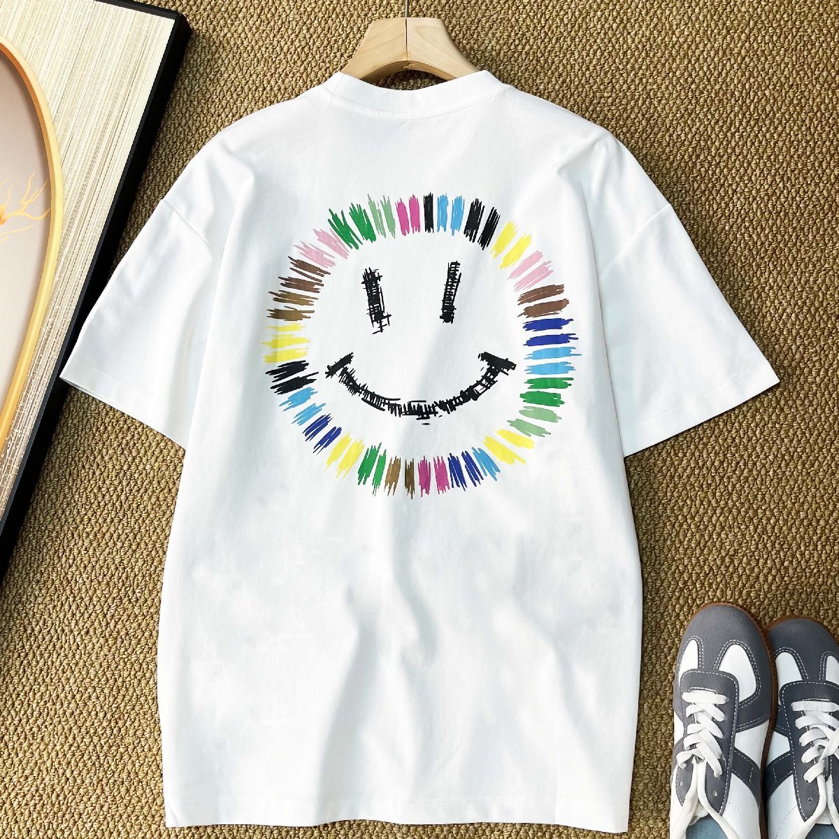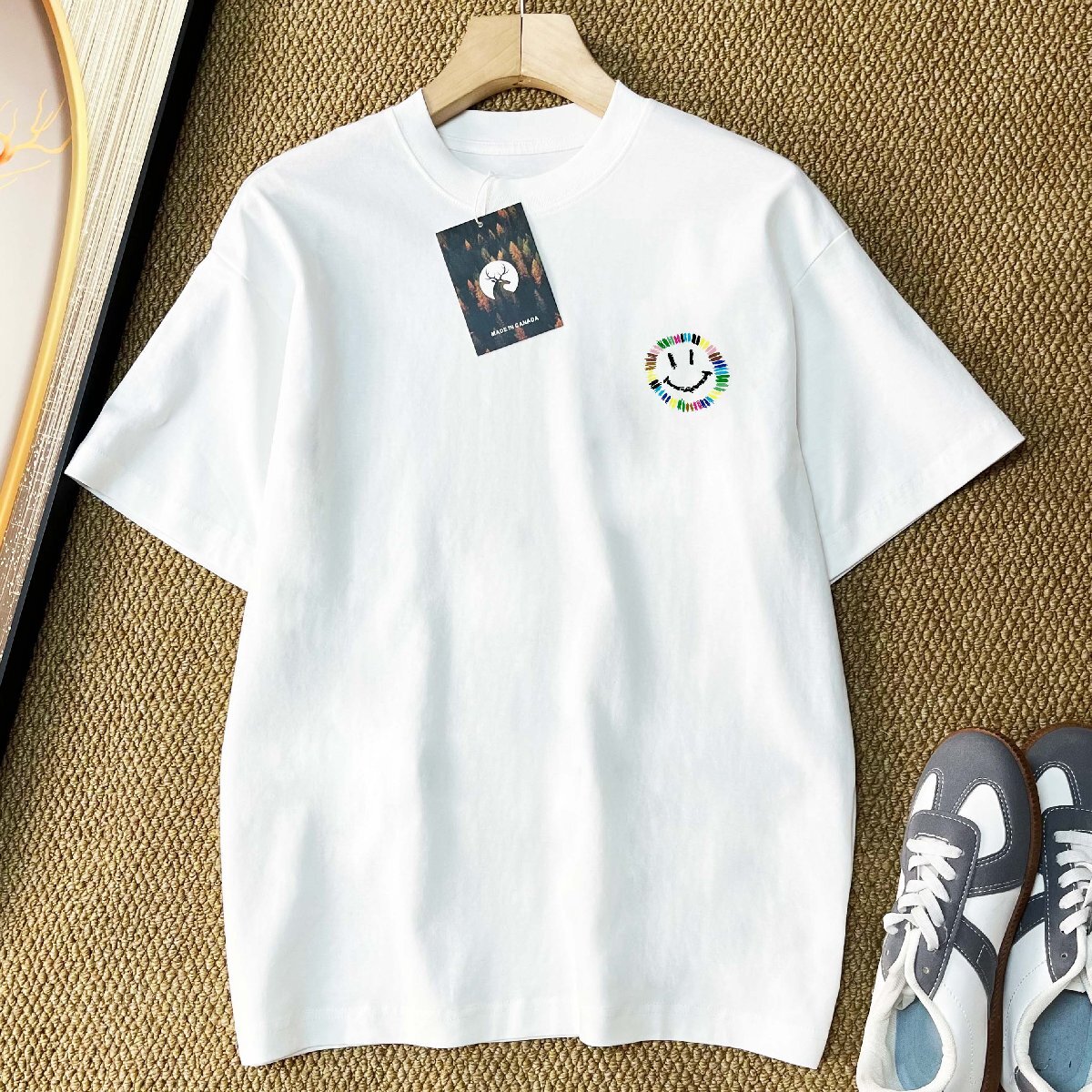 半袖 Tシャツ カナダ製造 コットン混 ソフト 笑顔柄 かわいい ゆったり カジュアル トップス プルオーバー スウェット 日常着 夏 SIZE:L