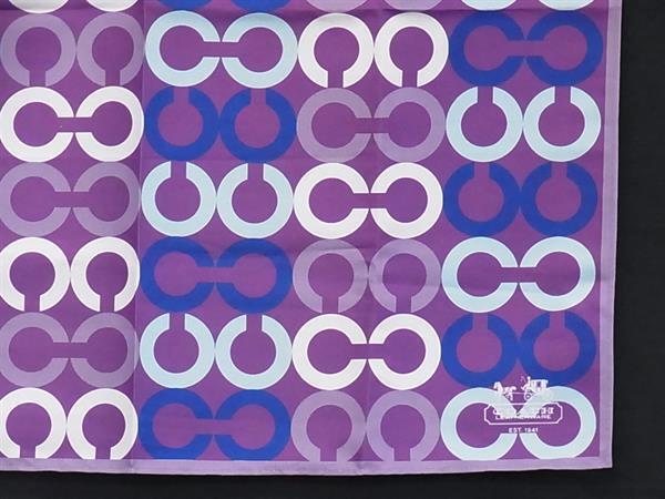 ■美品■ COACH コーチ MISS×コーチ オプアート ポリエステル 風呂敷 スカーフ レディース パープル系 DI4729