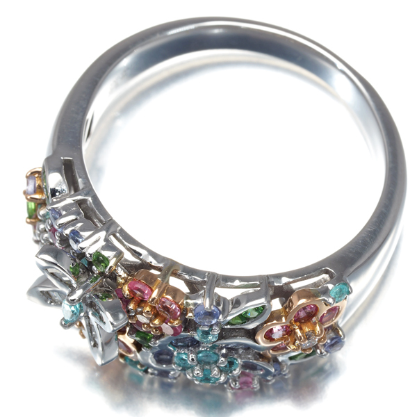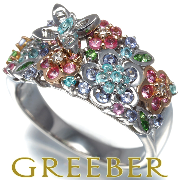 【商品ランク】 ※詳細はランク表をご確認下さい。 S 【ジャンル】 リング/指輪/ring 【ブランド】 - 【素材】 K18WG/18金/ホワイトゴールド/ K18PG/18金/ピンクゴールド 【重量】 6.6g 【サイズ】 リングサイズ:15号 デザイン幅:約10.6mm リング腹側幅:約2.8mm 【石目】 パライバトルマリン:総計0.20ct サファイア:総計0.31ct タンザナイト:総計0.14ct グリーンガーネット:総計0.10ct ダイヤモンド:総計0.08ct ※パライバトルマリンの3-4石には天然フラクチャーの微細な表面派生がございますが、いずれも着用時肉眼で確認できるレベルではございません。 【付属品】 なし 【商品状態】 新品仕上げ済み 【商品管理番号】 176823 |