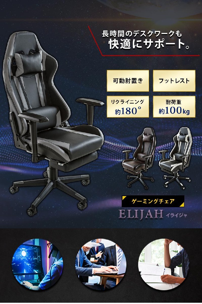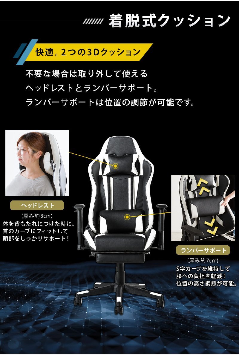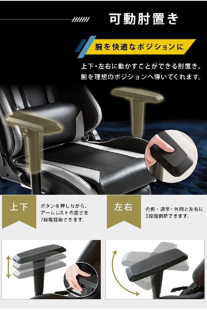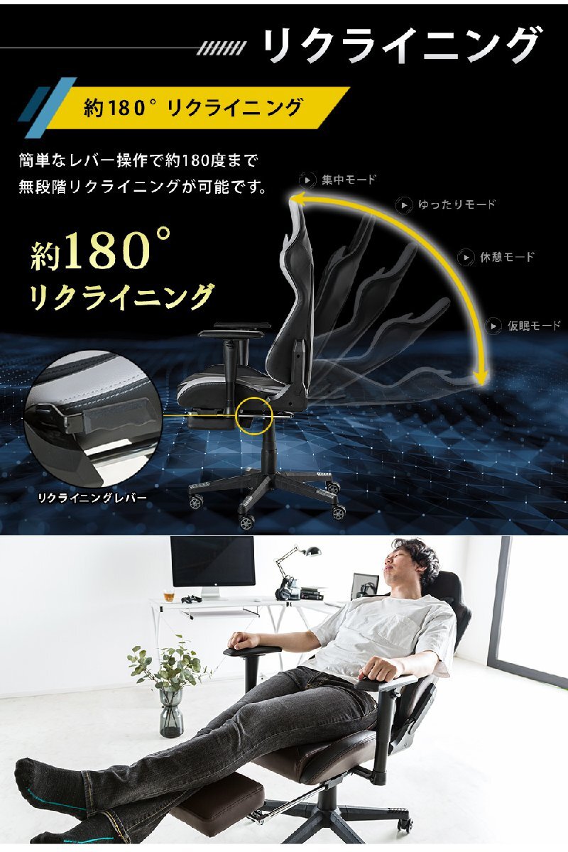 ゲーミングチェア オフィスチェア 3Dサポート 約180度リクライニング ロッキング フットレスト 肘置き調整 昇降 回転