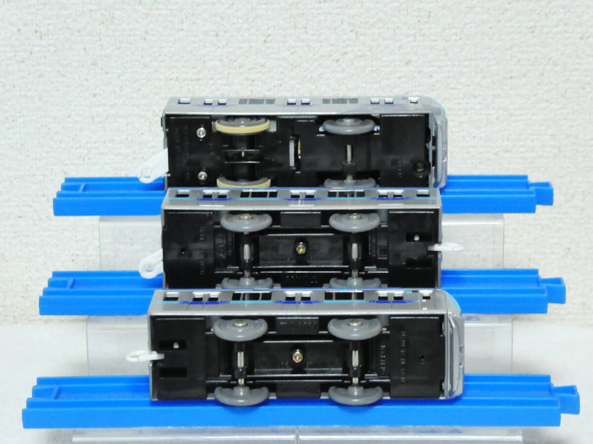 子供が遊んだ中古品です。外装には使用感や小傷があり、先頭動力車には電池液漏れ跡が目立ちます。