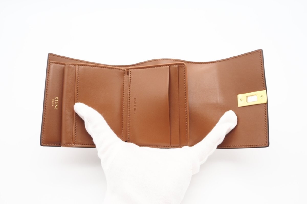 品名 | サテンドカーフスキン スモール トリフォールドウォレット 16セーズ タン | |