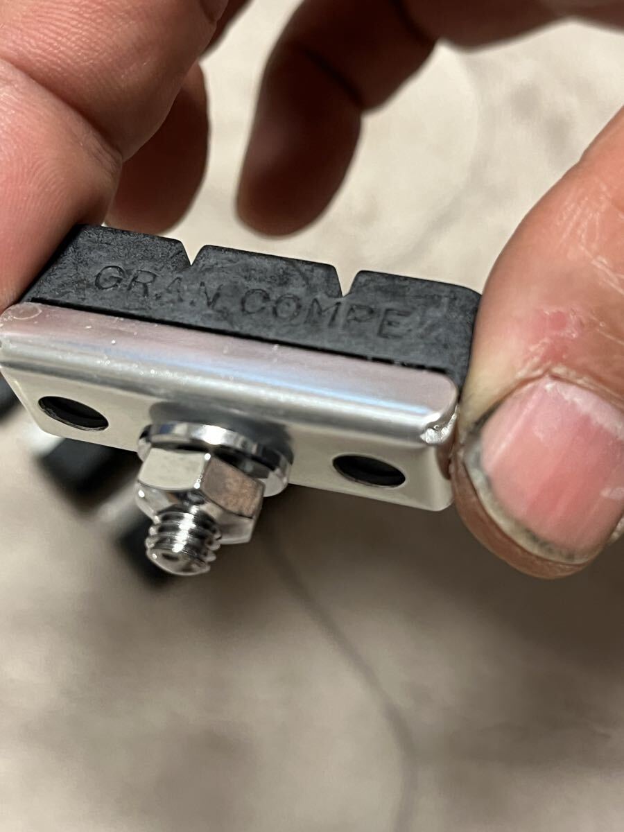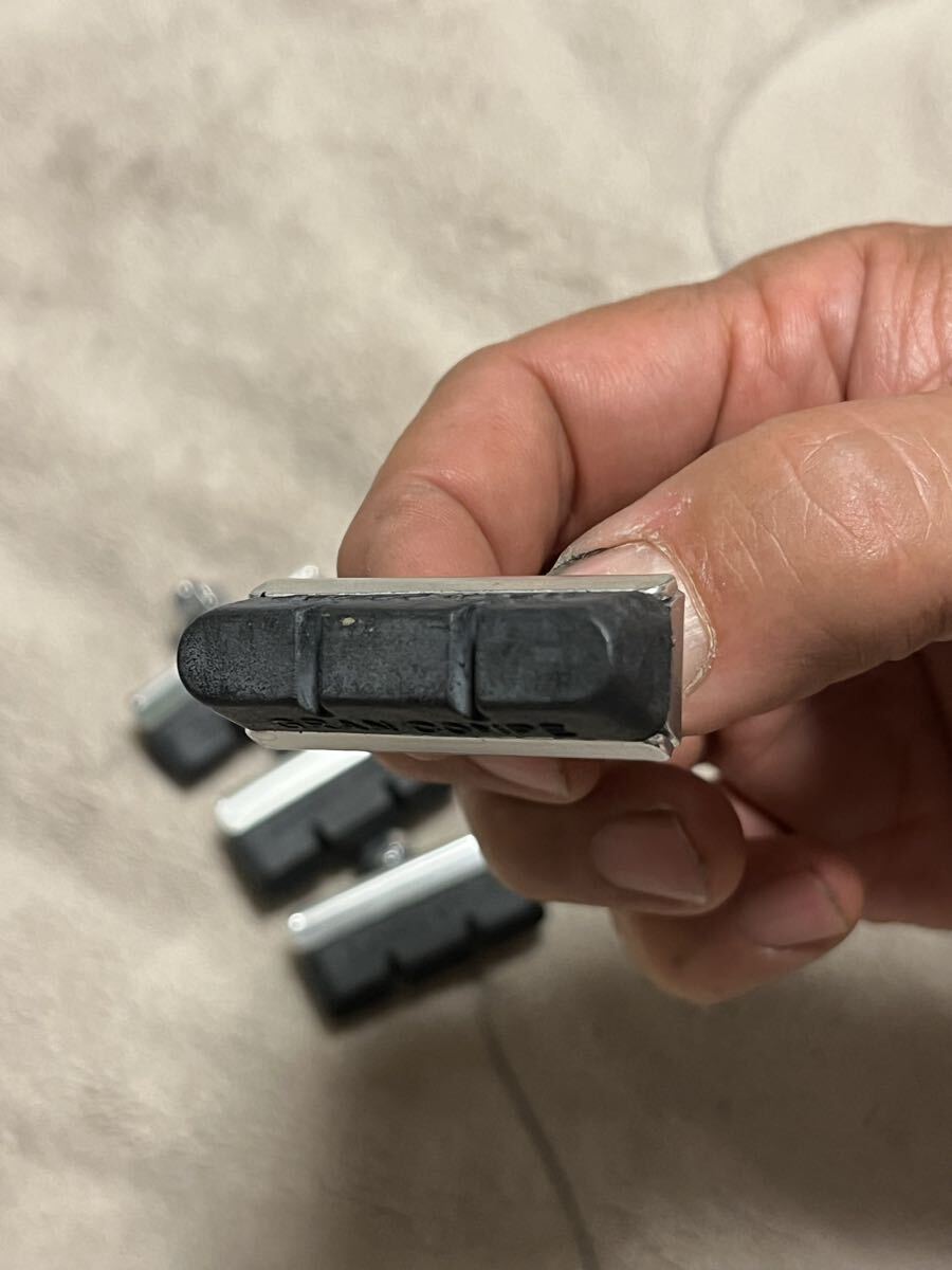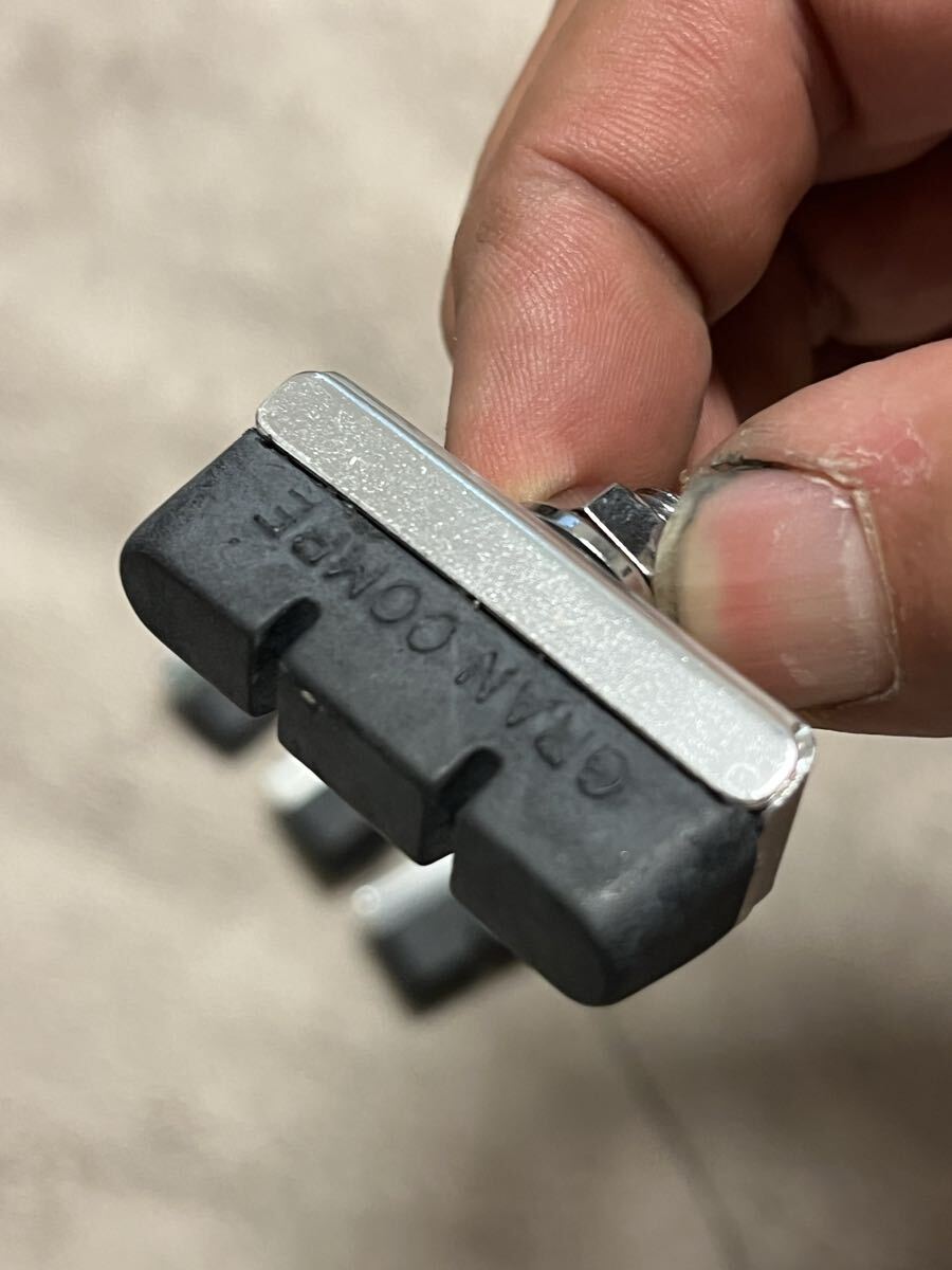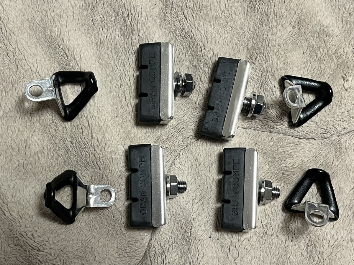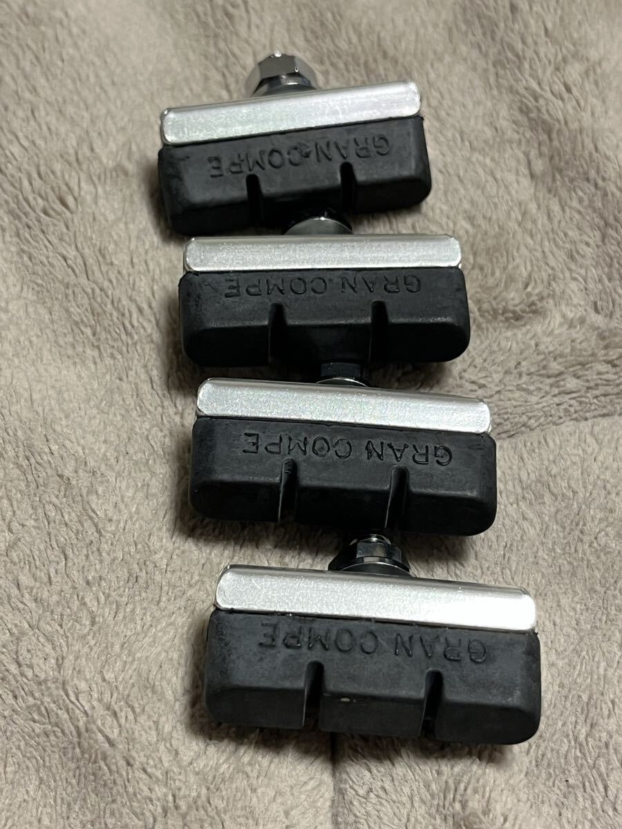 ダイアコンペ グランコンペのブレーキシュー4個セット未使用です。画像の備品も付きます。昭和の時代にショップで購入したと思います。そのまま室内保管でした。今でもグランコンペのブレーキを、使用してこだわりのある方いかがでしょうか?。古い物なのでノーリターン、ノークレームで。レターパックライトで発送します。