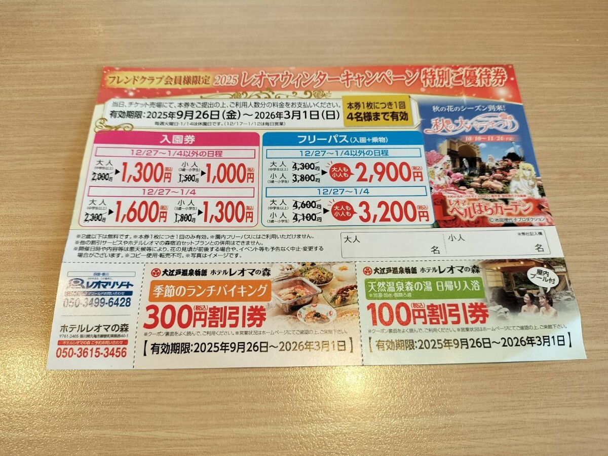 フレンドクラブ会員限定 2025 レオマウィンターキャンペーン 特別ご優待券