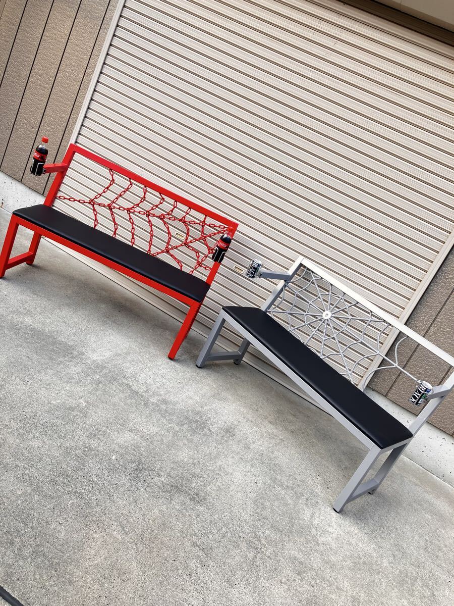 ハンドメイド製 肘掛け&ドリンクホルダー付アイアンベンチの出品になります。