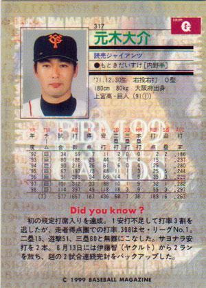 ★トレーディングカード★BBM1999★サインパラレル版【#317 元木大介】★