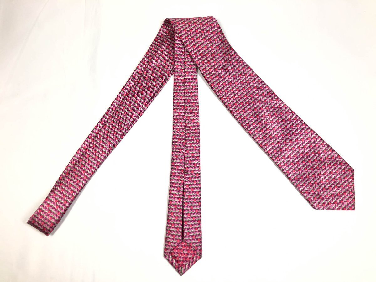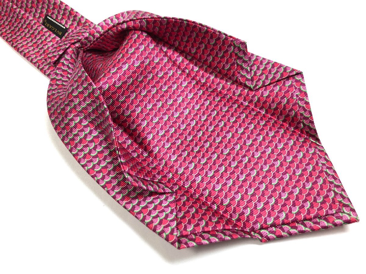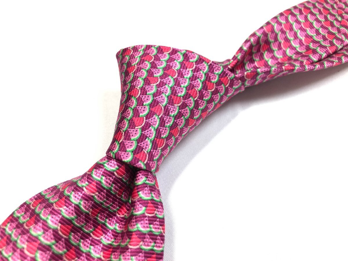 極美品【ブルガリ BVLGARI】セッテピエゲ風 お洒落なスイカプリント柄♪ シルク ネクタイ (メンズ) ピンク系 伊製 ◇17MM8703◇