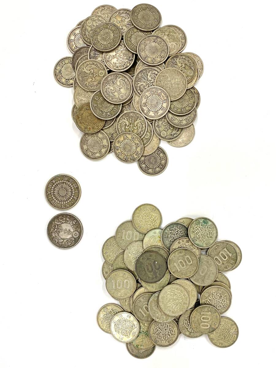 銀貨おまとめ 100円銀貨 48枚 五十銭銀貨 小丸 59枚 中丸 2枚