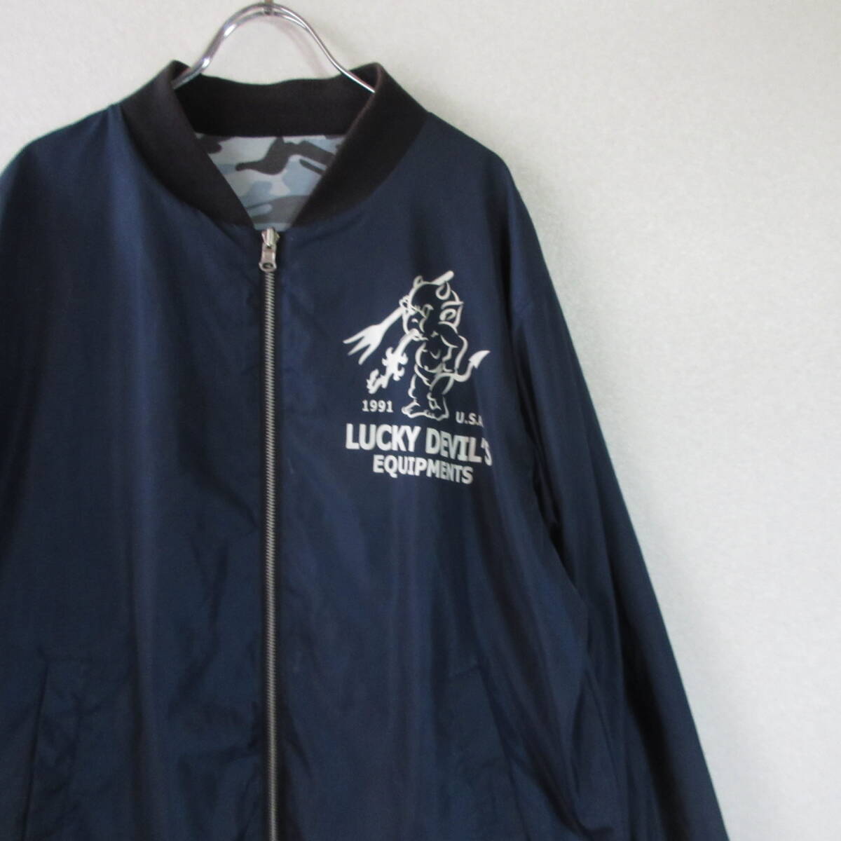 リバーシブルジャケットでネイビー地はナイロン、迷彩柄はコットン素材です。