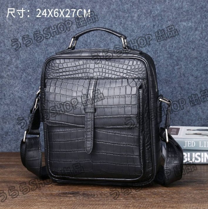 マット仕上げ クロコダイル本革 ワニ革 メンズ ショルダーバッグ 肩掛け メッセンジャーバッグ 斜めがけ 腹部革 センター取り xhw0165