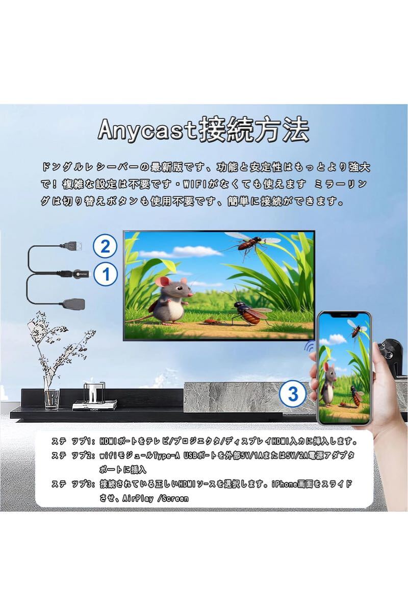HDMI ミラーキャスト 【2025最新Anycast・正規品】スマホ ミラーリング エニーキャスト 4K HD 1080p テレビに携帯の画面を映す YouTube鑑賞 lPhone/android 対応 接続簡単 (