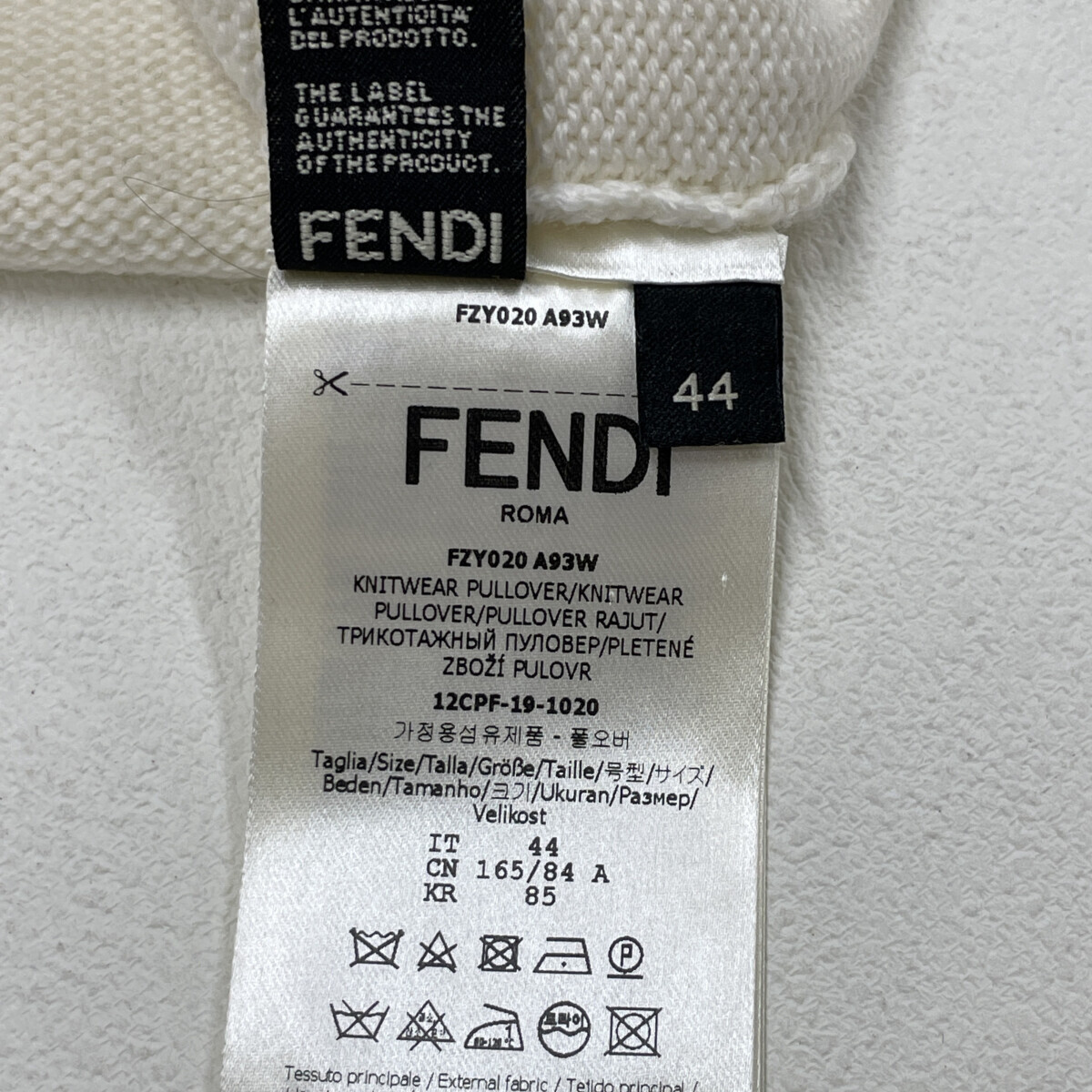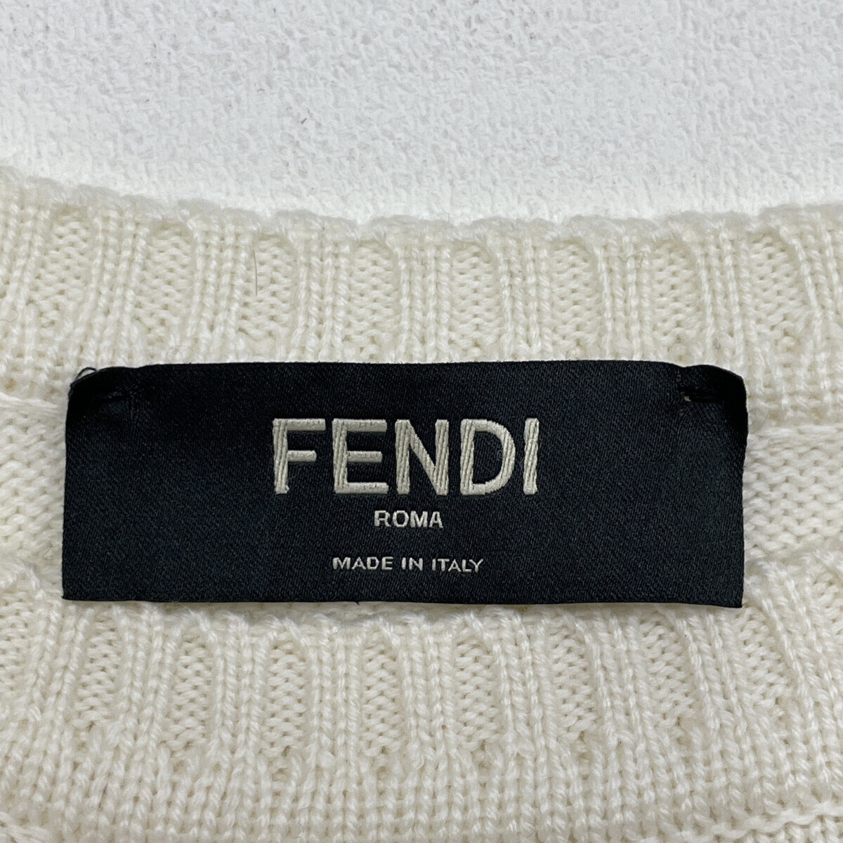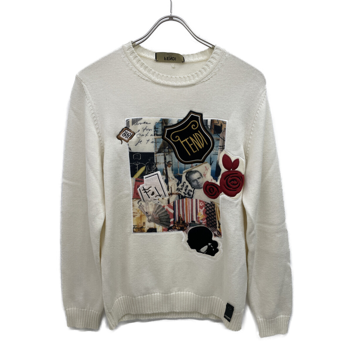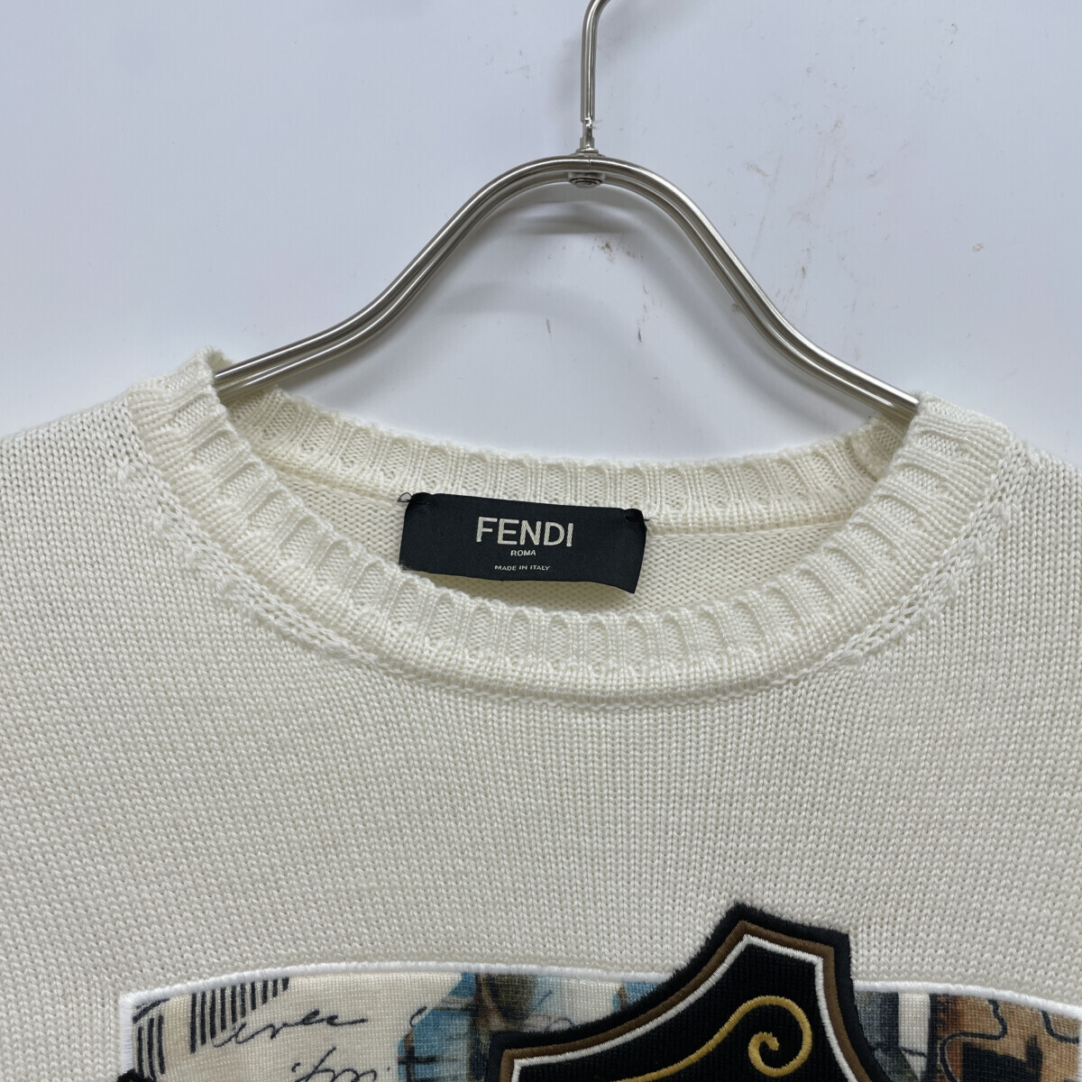 FENDI フェンディ 19年 FZY020 ホワイト ワッペン クルーネックセーター ホワイト 44 トップス ウール メンズ 中古