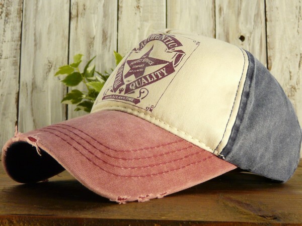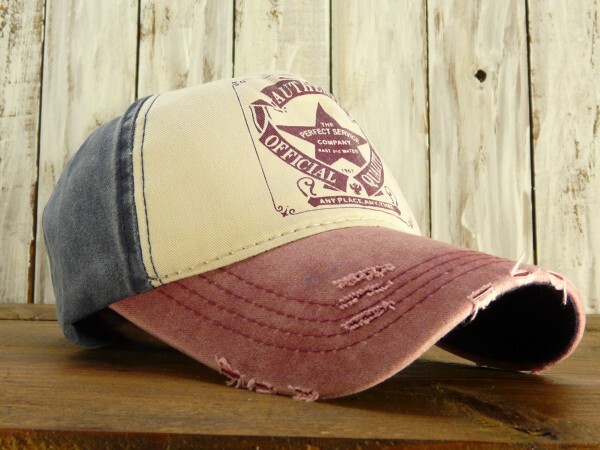 送料\450 AUTHENTIC OFFICIAL QUALITY ダメージキャップ レッド ネイビー サイズ調整可 男女OK!メンズ レディース ②