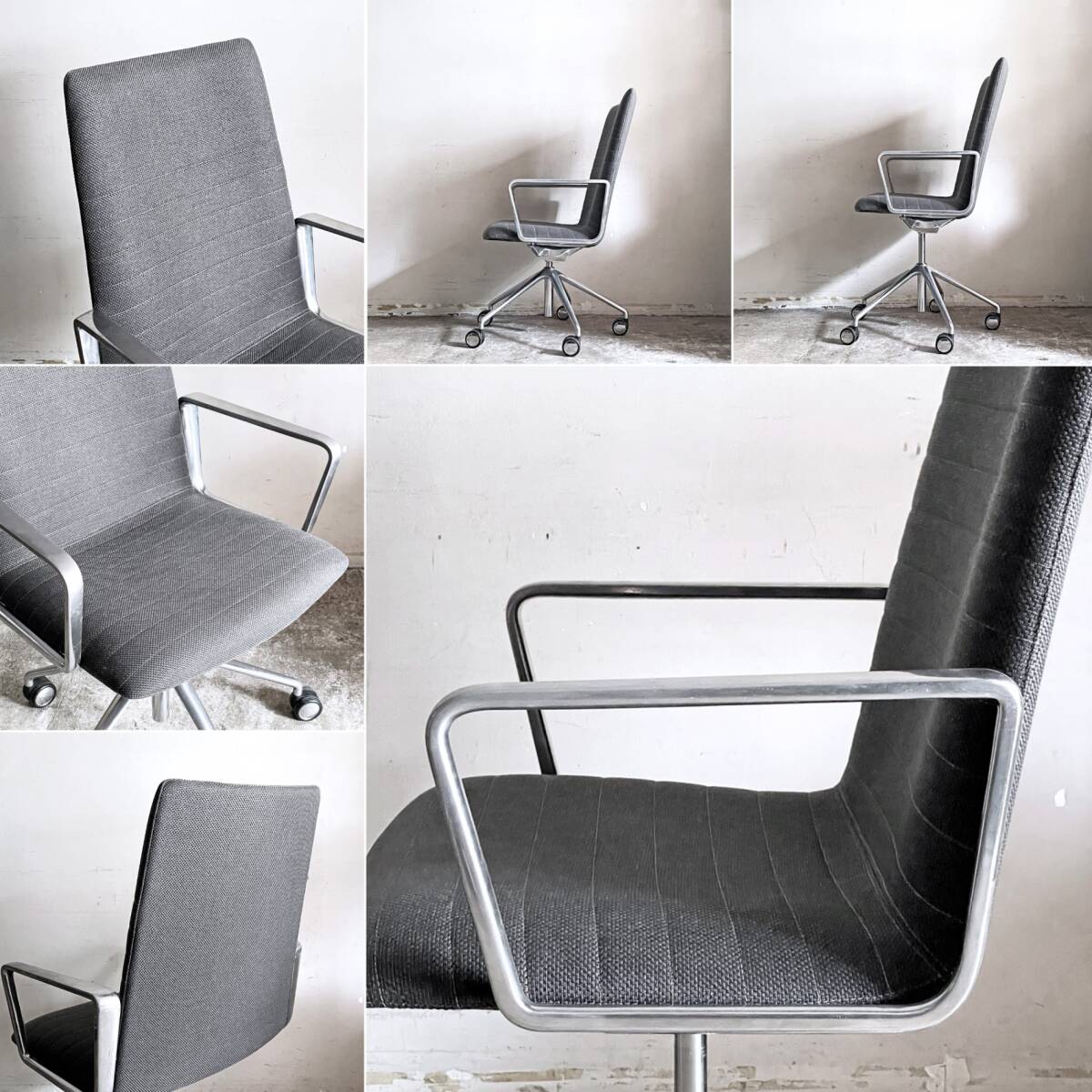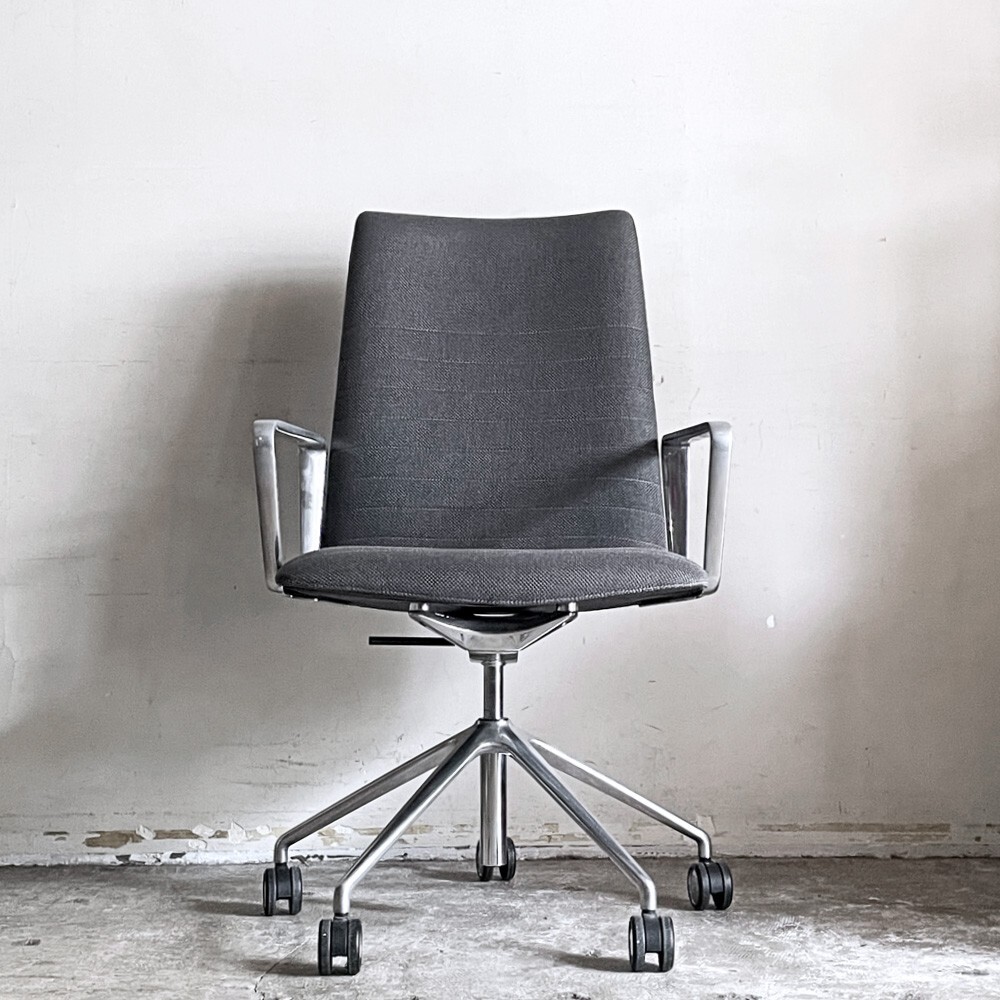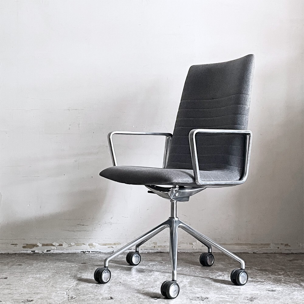 コメント | 1955年にスペインのバルセロナで設立した家具ブランド" アンドリューワールド / Andreu World "。 スペイン家具業界トップの輸出量を誇り、パトリシア・ウルキオラやジャスパー・モリソンをはじめとする世界的著名デザイナーとコラボレーションを行い、数多くの賞を受賞しています。 そんな同社から販売されている「 フレックス エグゼクティブ / Flex Executive 」。 幅広い仕様から選択可能なアイテムとなっております。背もたれ高は3つある内、今回入荷したのは中間の高さであるインターミディエイトバックのアームチェア。張地はファブリックでアルミベースのキャスター仕様となっています。 背座一体型で身体の接地面が多い為長時間の着座の際も疲れにくく、全体にクッションが入っているので包み込まれるような座り心地に。 アームやキャスターも相まってデスクワークをストレスなく快適にサポート。 座面の高さはガスシリンダーにて簡単に調整が可能。身体の大きさに関係無く、どなたでもお使い頂けます。 グレーカラーのファブリックと、鈍く光るアルミニウムフレームの組み合わせはモダンな雰囲気で清潔感のあるルックス。 デスク周りの環境をランクアップさせたい方にオススメのチェアです。 ※当ショップは、主にリサイクル品を取り扱っております。基本的にUSED品である事をご理解頂き、ご入札をご検討下さいませ。 |
