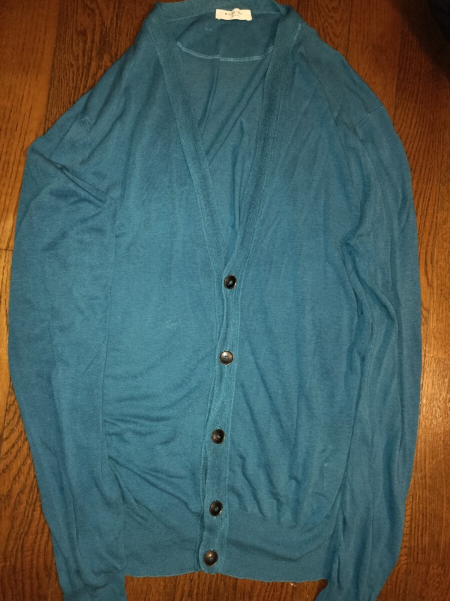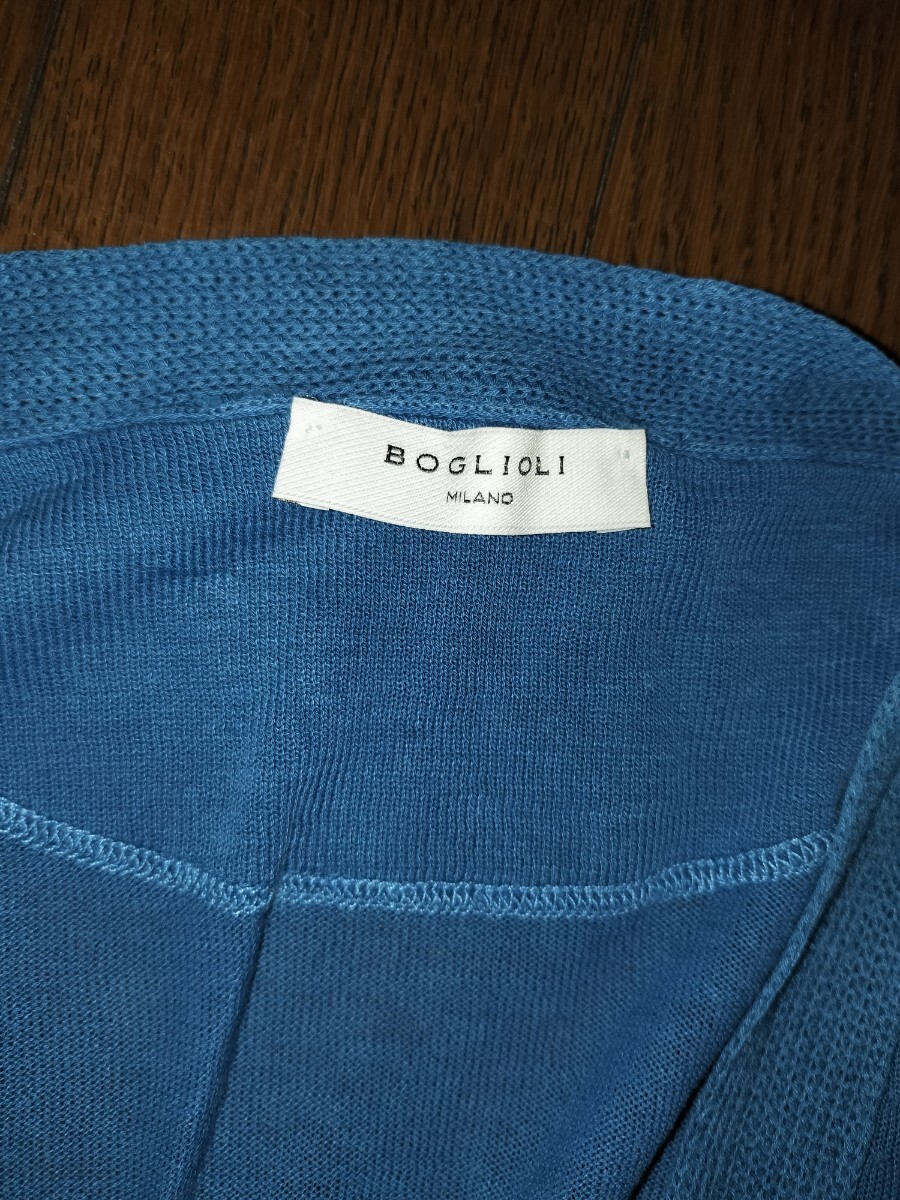 ボリオリの長袖カーディガンです。お色は定番、水色の無地です。