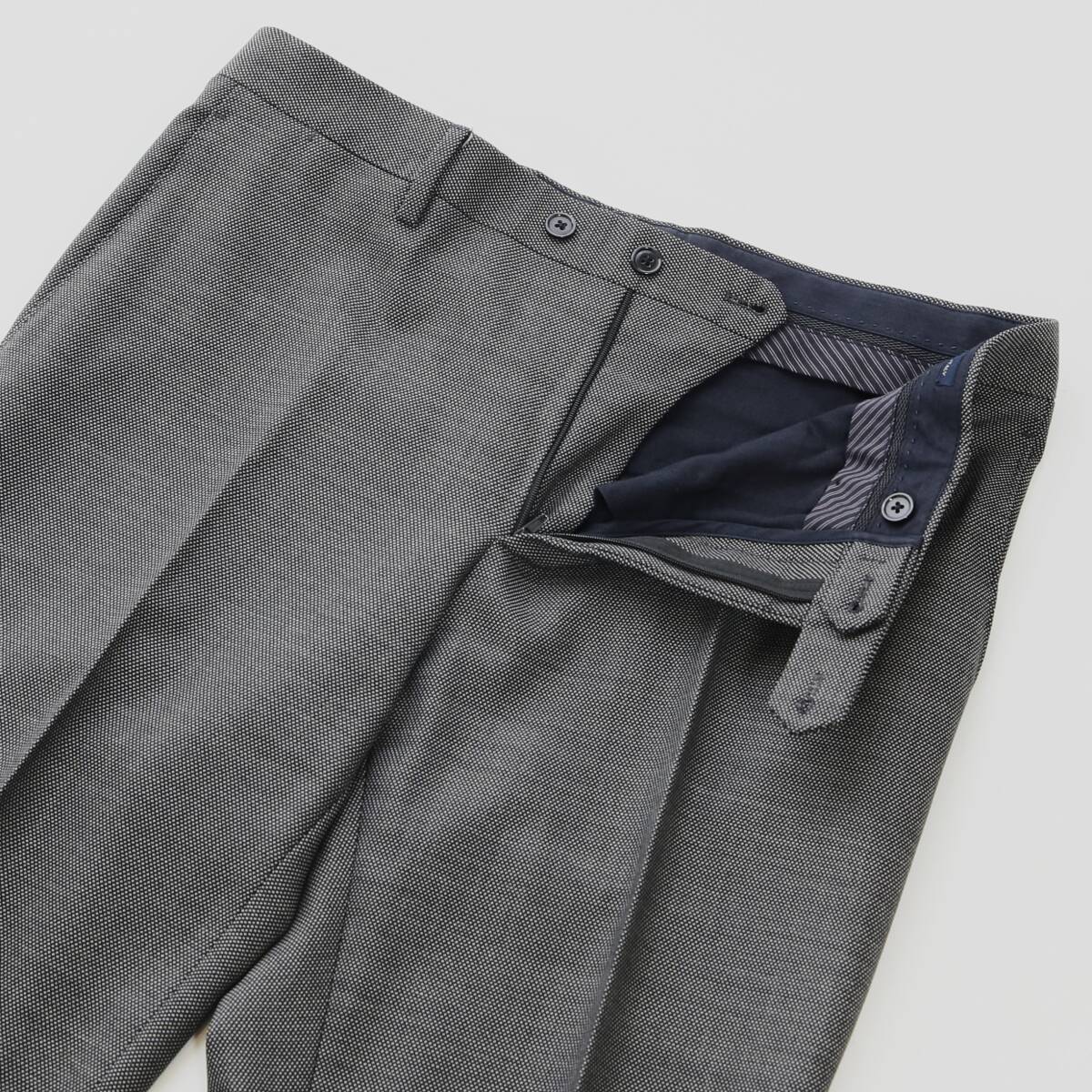 パンツは0プリーツのスッキリしたシルエットで、裾にかけて緩やかなテーパードのかかった綺麗なシルエットです。