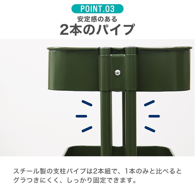 キッチン、リビング、浴室、ガレージ等、様々なシーンでお使いいただけます。 中段は収納する物に合わせて自由に高さ調節可能! 蝶ナット仕様なので工具不要です。 各段のバスケット底面はメッシュ仕様! 軽くて通気性が良く、ホコリや細かいゴミが溜まりづらいです。 ストッパー付きキャスター採用! 4脚中2脚にストッパーが付いてます。しっかり固定もでき安全です。 その他、支柱パイプは2本組で安定感抜群です。 また、サビに強い粉体塗装を施しており、水に濡れても大丈夫! 機能性とデザイン性を兼ね備えた収納ワゴンで快適なライフスタイルに♪ 【商品詳細】 カラー:カーキ サイズ:(約)幅42cm×奥行30.8cm×高さ78cm 1段当たりの高さ:(約)8.7cm 重量:(約)5.7kg 材質:スチール (収納ラック キッチンラック バスケットラック スチールラック スチールワゴン ツールワゴン ベビーワゴン 多機能 ワゴン ラック 高さを変えられる キッチン 炊飯器 ランドリー 子供部屋 ランドセル オムツ 庭 ガレージ プレゼント 北欧 かわいい 人気 おすすめ 安い ) |