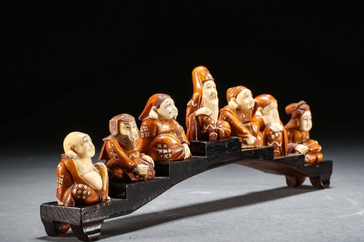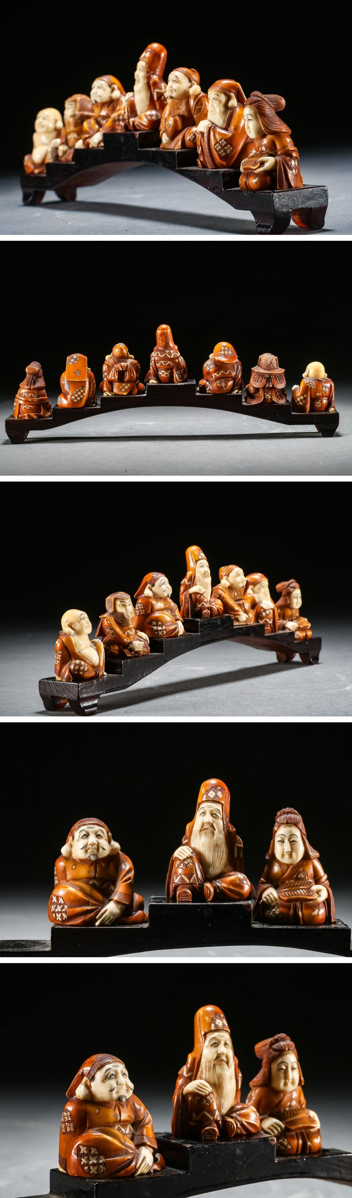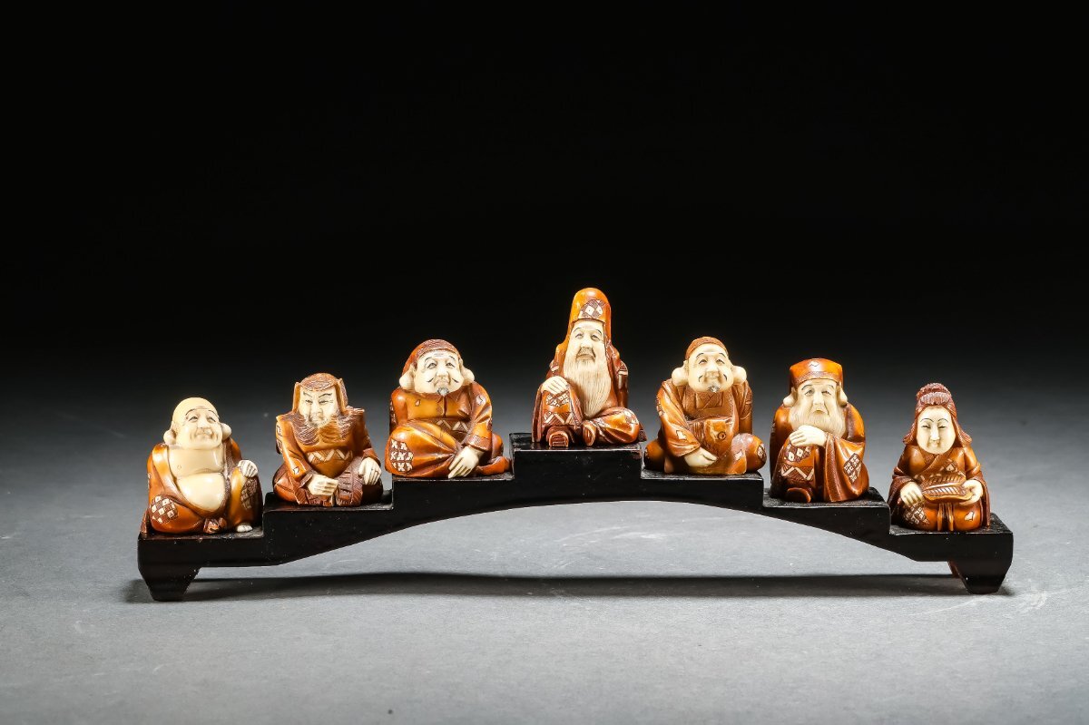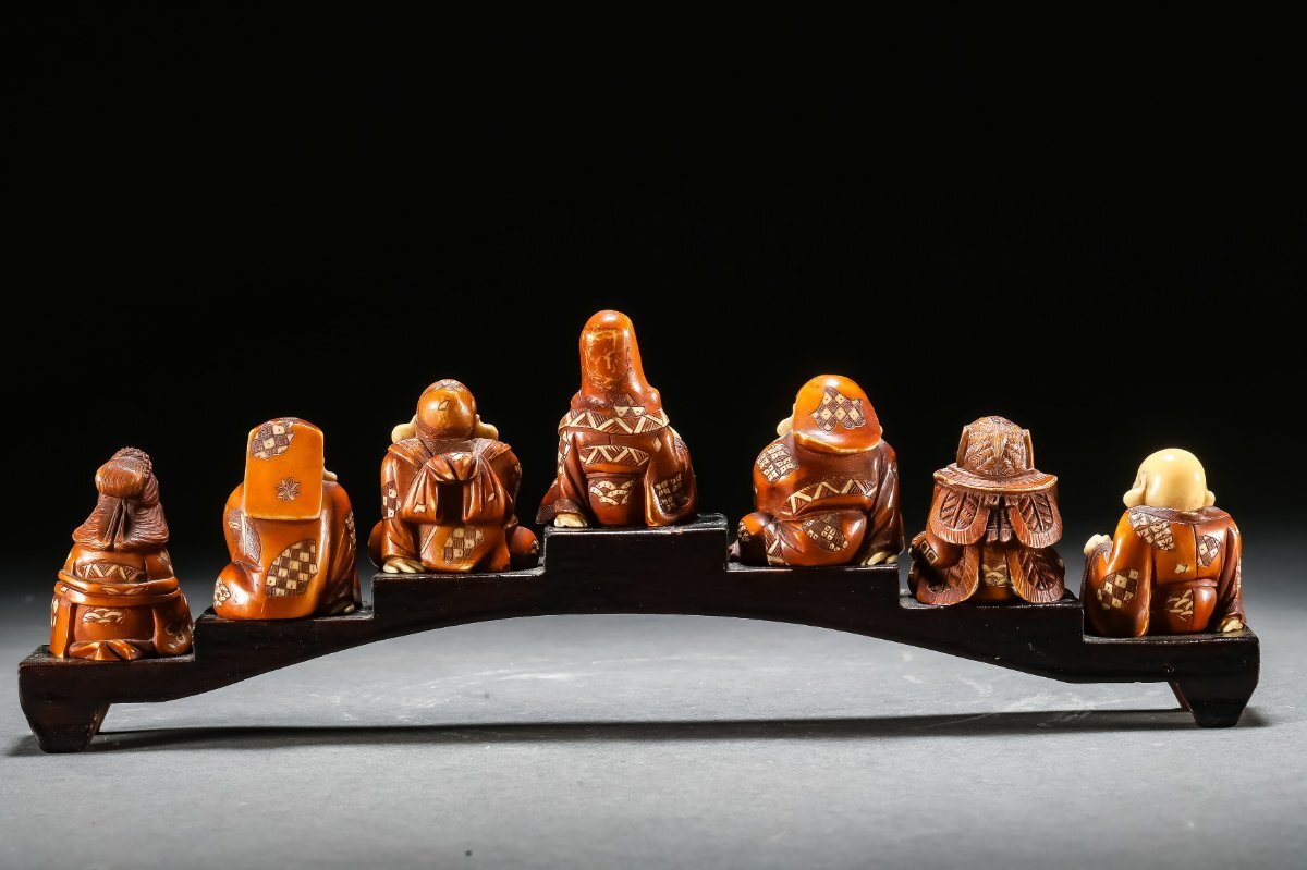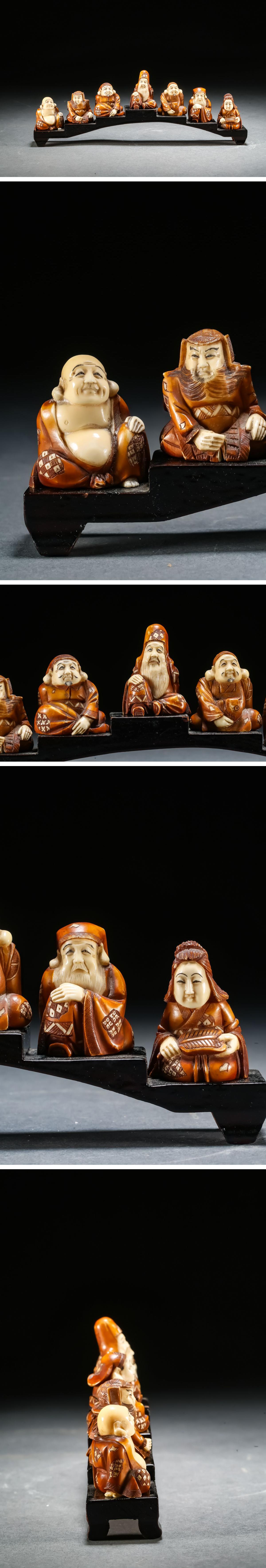【雲錦】某有名オークション買入 時代物 特殊白材 色絵七福神造像 骨董品 古美術Z-77