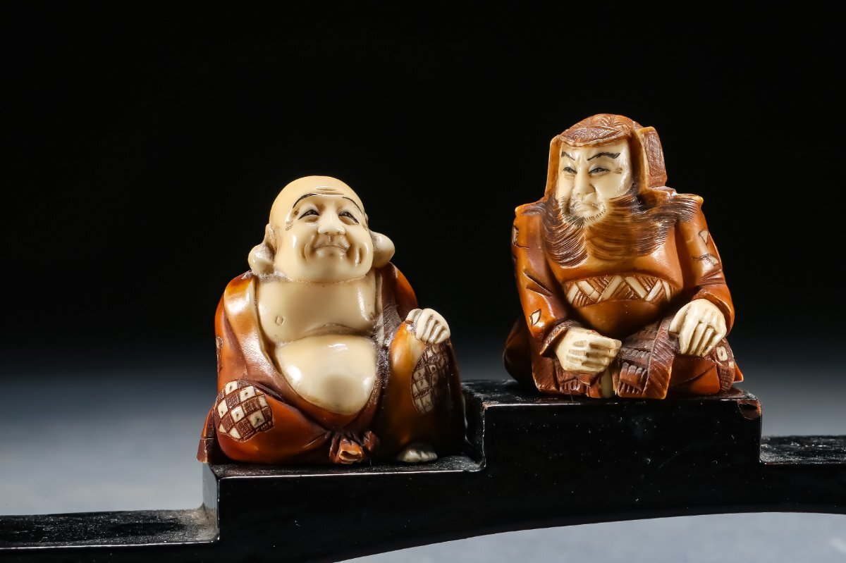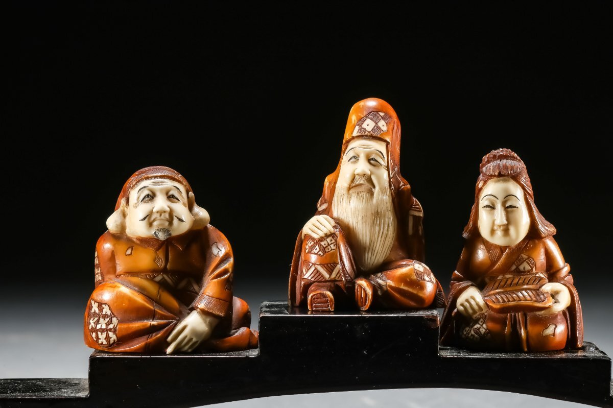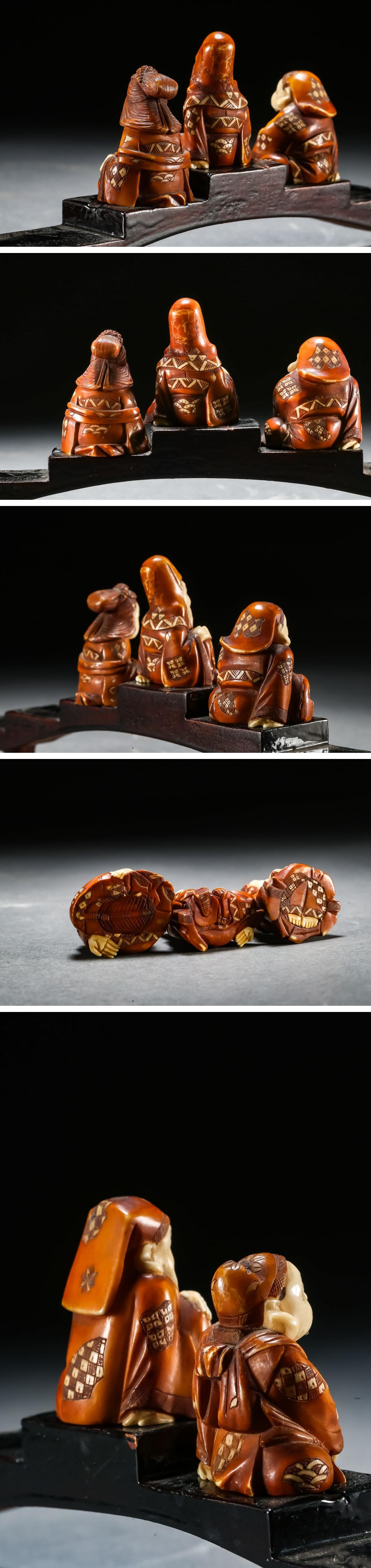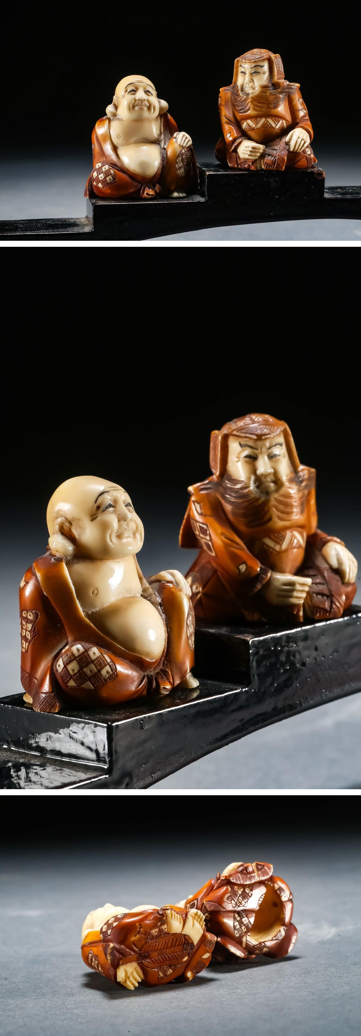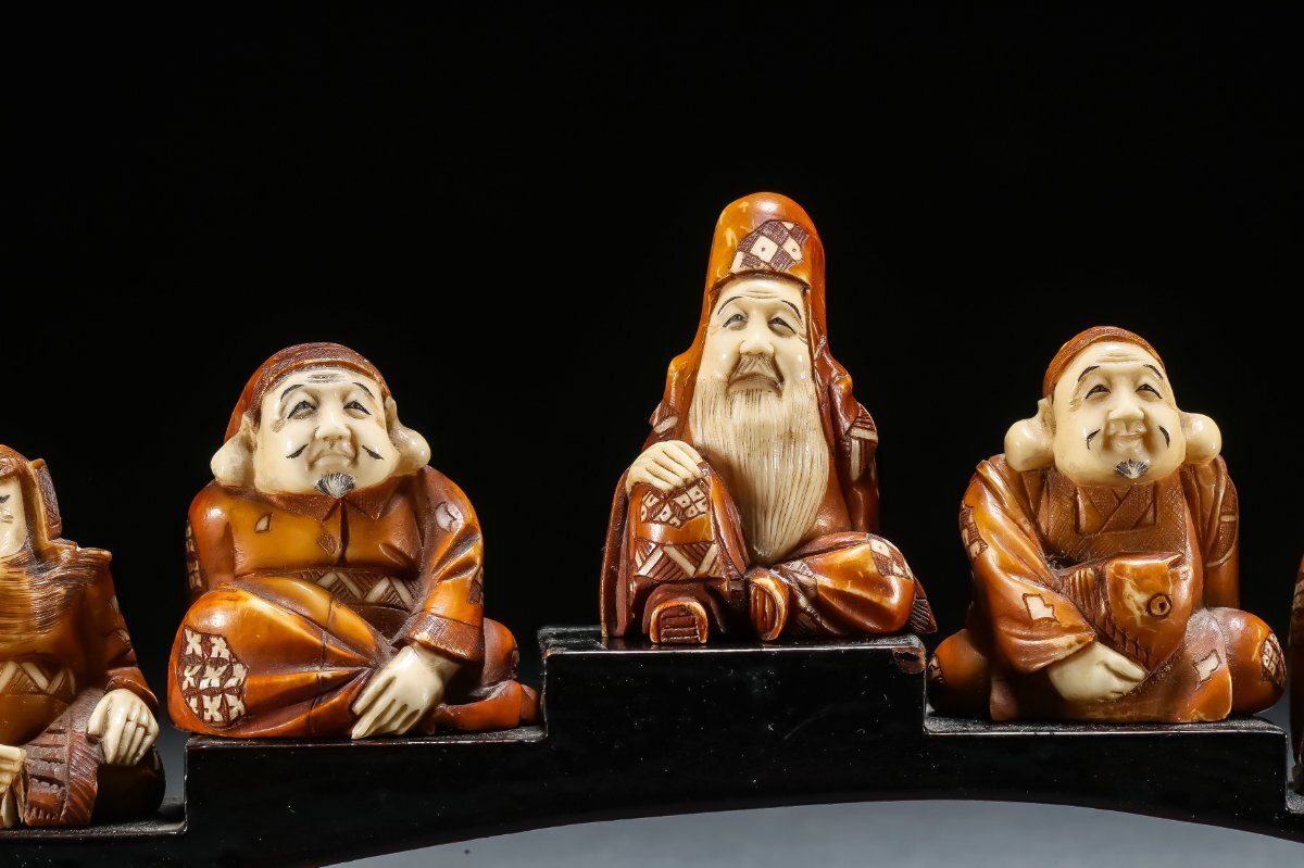 【雲錦】某有名オークション買入 時代物 特殊白材 色絵七福神造像 骨董品 古美術Z-77