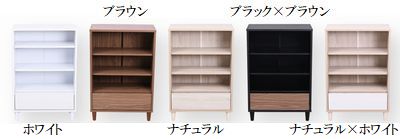 | オープン&チェスト。 6つのデザインと5つのカラーからお選びいただける6デザインキャビネット”Adatto” オープン部分にはディスプレイ、引出しには見せたくないものを収納できます。 |