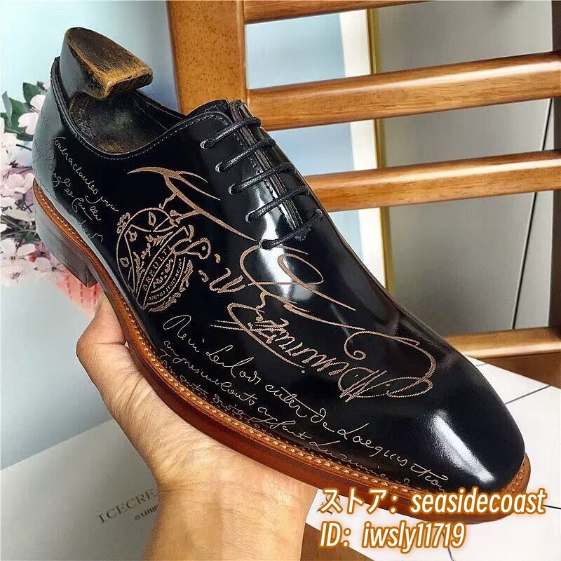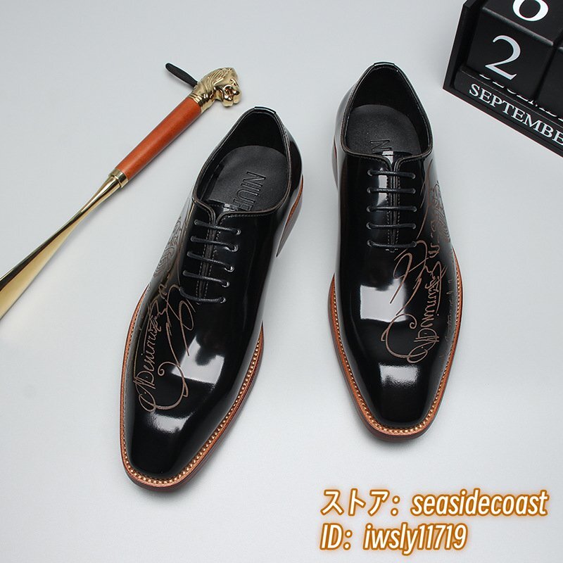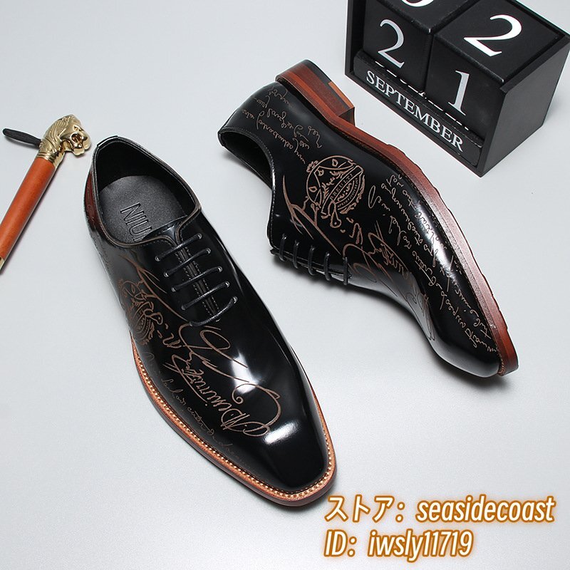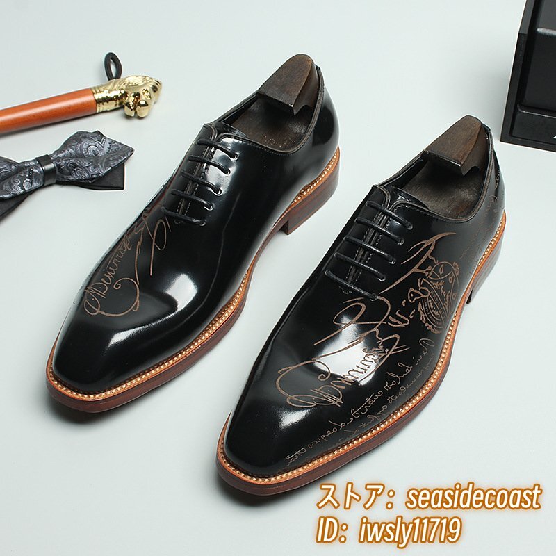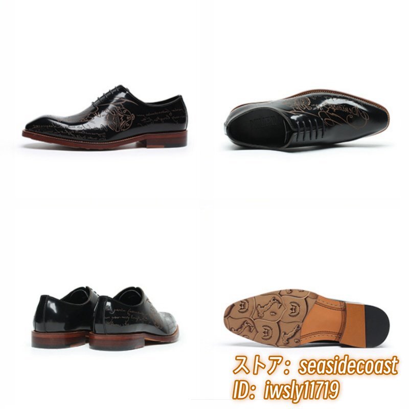 極美品■定価12万超 ビジネスシューズ 本革 レザーシューズ 職人手作り 彫り 紳士靴 メンズ 革靴 高級牛革 フォーマル ブラック 25.0cm