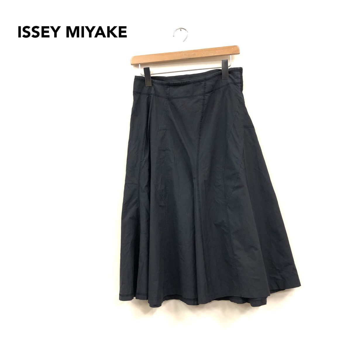 2O1444-D◆ ISSEY MIYAKE イッセイミヤケ デザインスカート 立体裁断 ◆ size2 チャコール ブラック コットン 古着