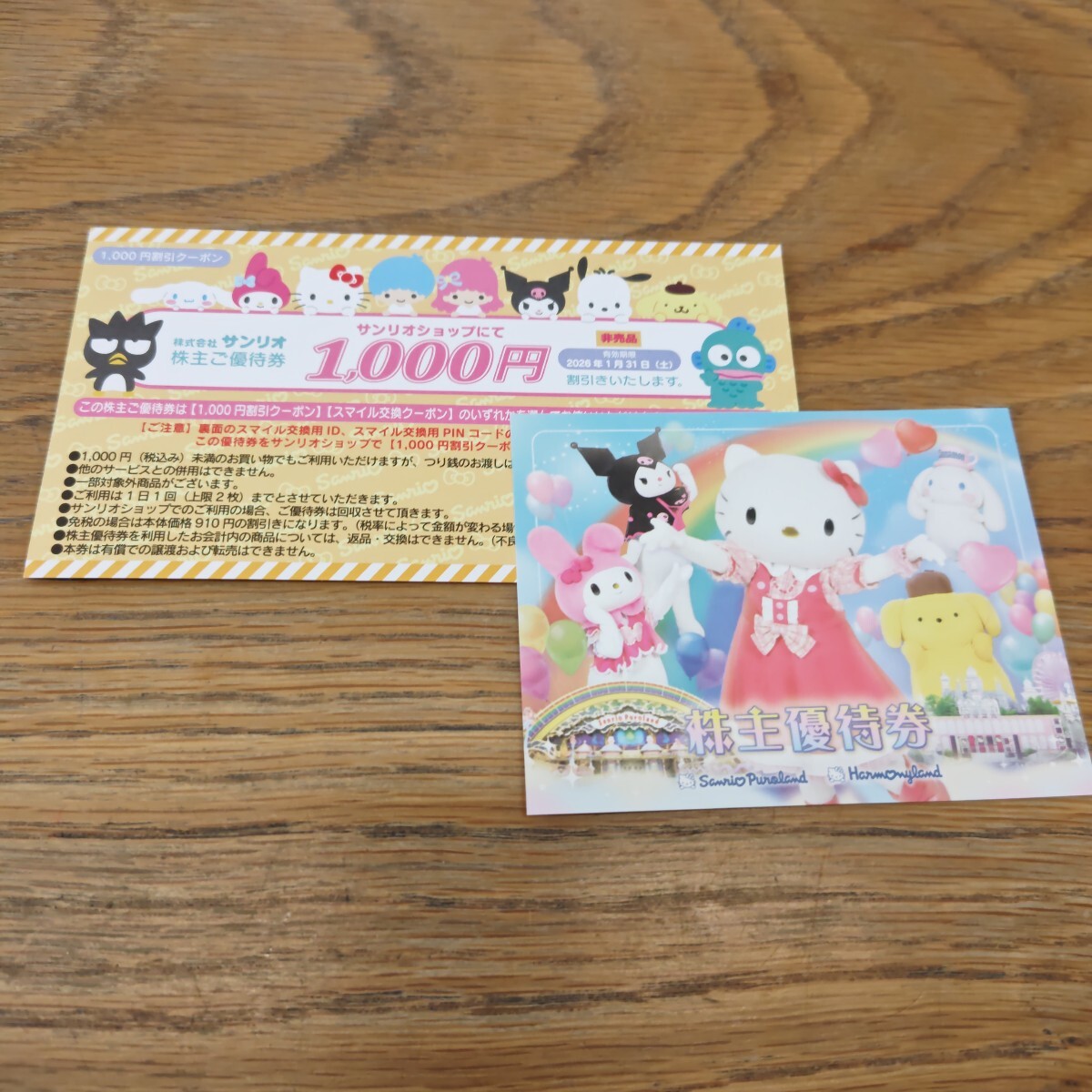 1000円分のサンリオショップ割引クーポンまたはスマイル交換クーポンを1枚付けます。