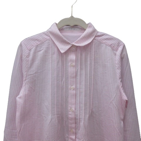 未使用品 ミッシェルクラン MICHEL KLEIN シャツ ストライプ 長袖 38 ピンク 白 ホワイト /MS レディース