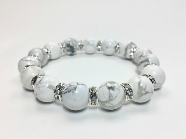 パワーストーン ブレスレット ハウライト 12mm 天然石ブレス シルバー 開運 浄化 数珠ブレス メンズ 男性♪