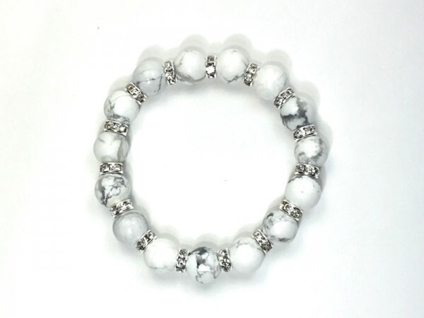 こちらは、12mm玉のハウライトを使用した天然石ブレスレットです。石との間にはロンデルを挟み高級感を演出しています。シンプルなデザインですのでどんなコーディネートとも合わせ易いブレスレットです。石大きさは12mm玉です。内径約18cmです。(サイズ変更の場合は取引ナビにてご連絡をお願いします。) 数に限りがございますので気になる方はお早めにどうぞ。
