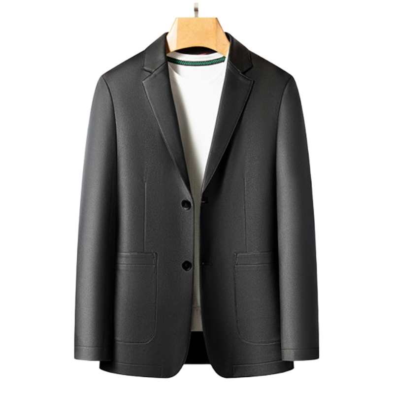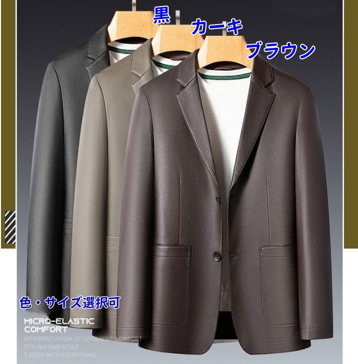 テーラードジャケット フェイクレザージャケット 二つボタオン PUレザージャケット メンズ*新品 ブレザー 春秋冬服紳士服【PY8705】カーキ 5XL