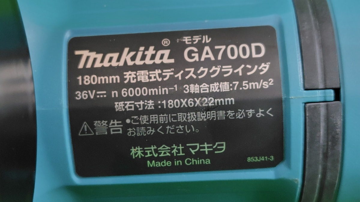 | TMO 10N21【中古】マキタ 36V(18V+18V) 180mm 充電式ディスクグラインダ パドルスイッチ GA700D 本体・ケースのみ |